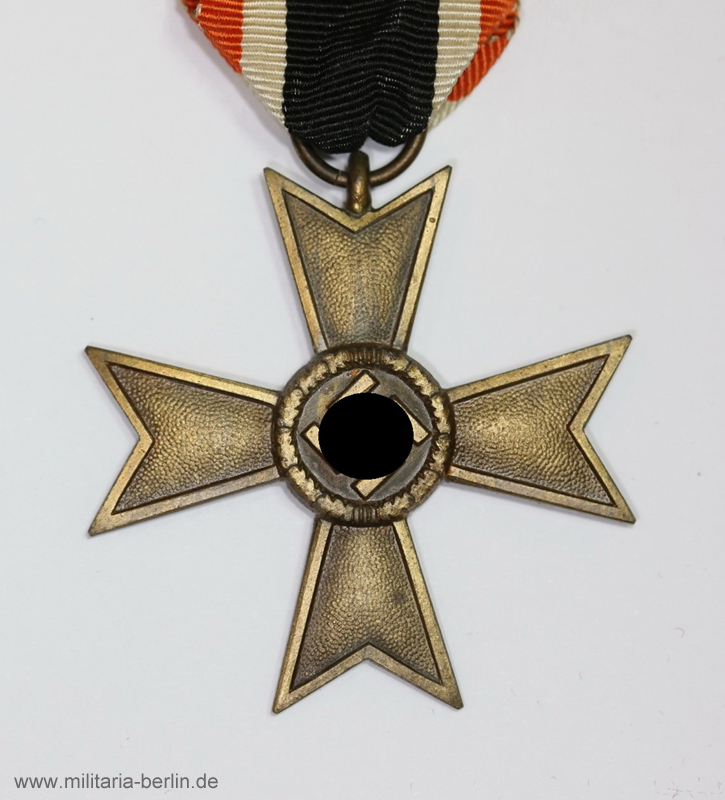 Das Kriegsverdienstkreuz ist der Form nach ein achtspitziges Malteserkreuz mit rundem Mittelteil. Auf deren Vorderseite ein Hakenkreuz mit Eichenlaubkranz zu sehen ist. Rückseite darauf das Stiftungsjahr „1939“. Die II. Klasse in Bronze, die I. Klasse und das Ritterkreuz in Silber. Die mit Schwertern verliehenen Stücke, jeweils zusätzlich mit durch die Mitte laufenden gekreuzten Schwertern.