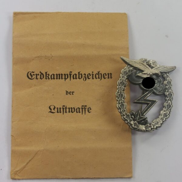 Erdkampfabzeichen der Luftwaffe, Hst. G.H. Osang Dresden, in Verleihungstüte, Hortfund (!)
