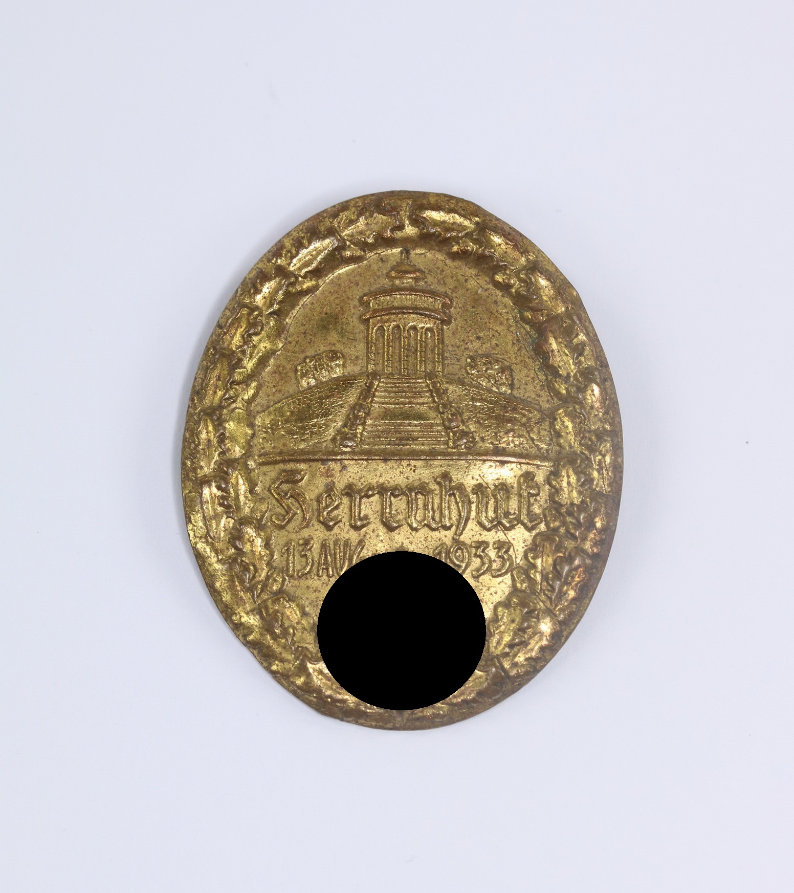 Tin plate, the pin partly broken(!), otherwise good.