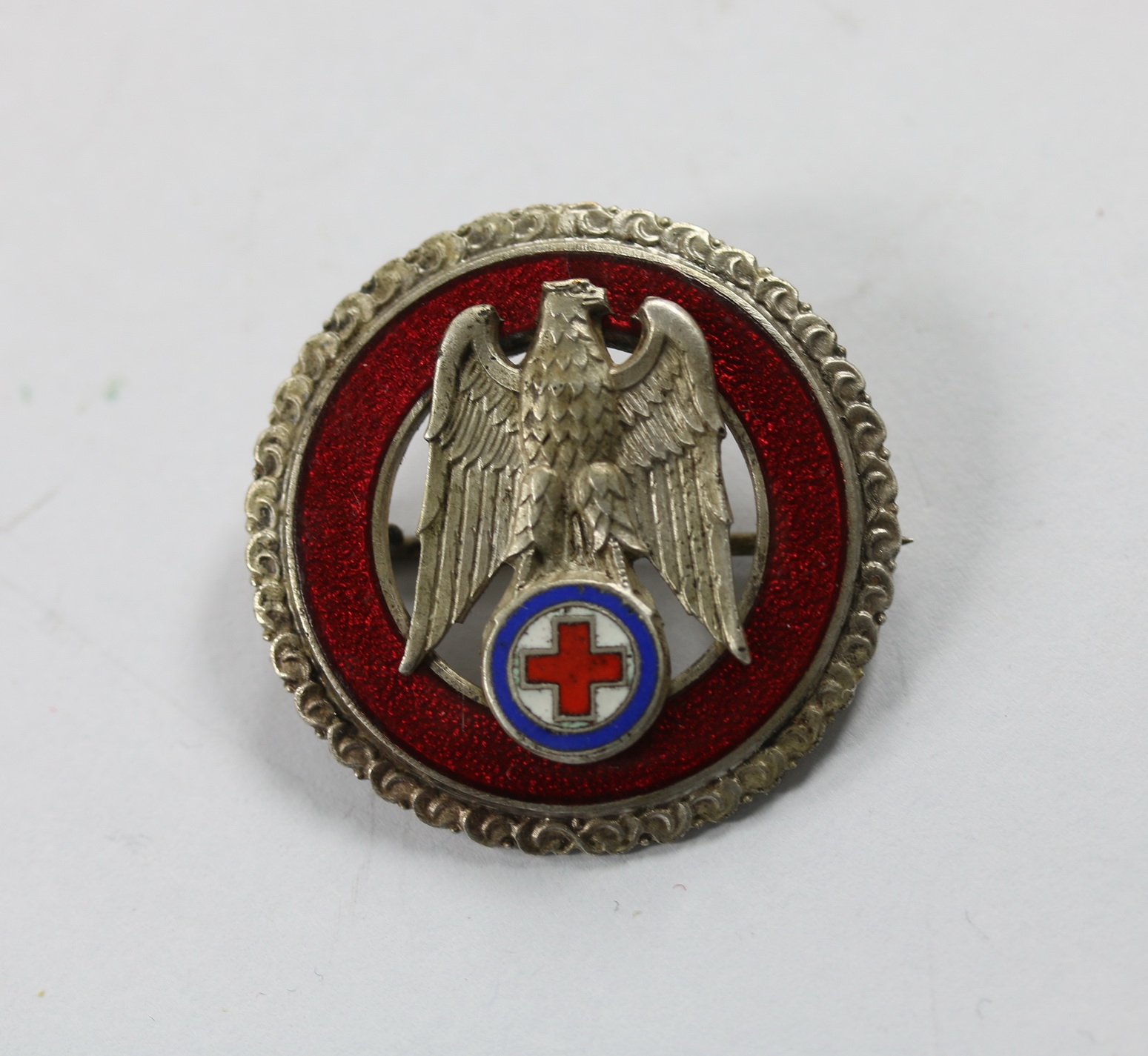 Tombak/brass based and in a very good, slightly worn condition with all of the silver plate still present and some patina. The enamel without damage.