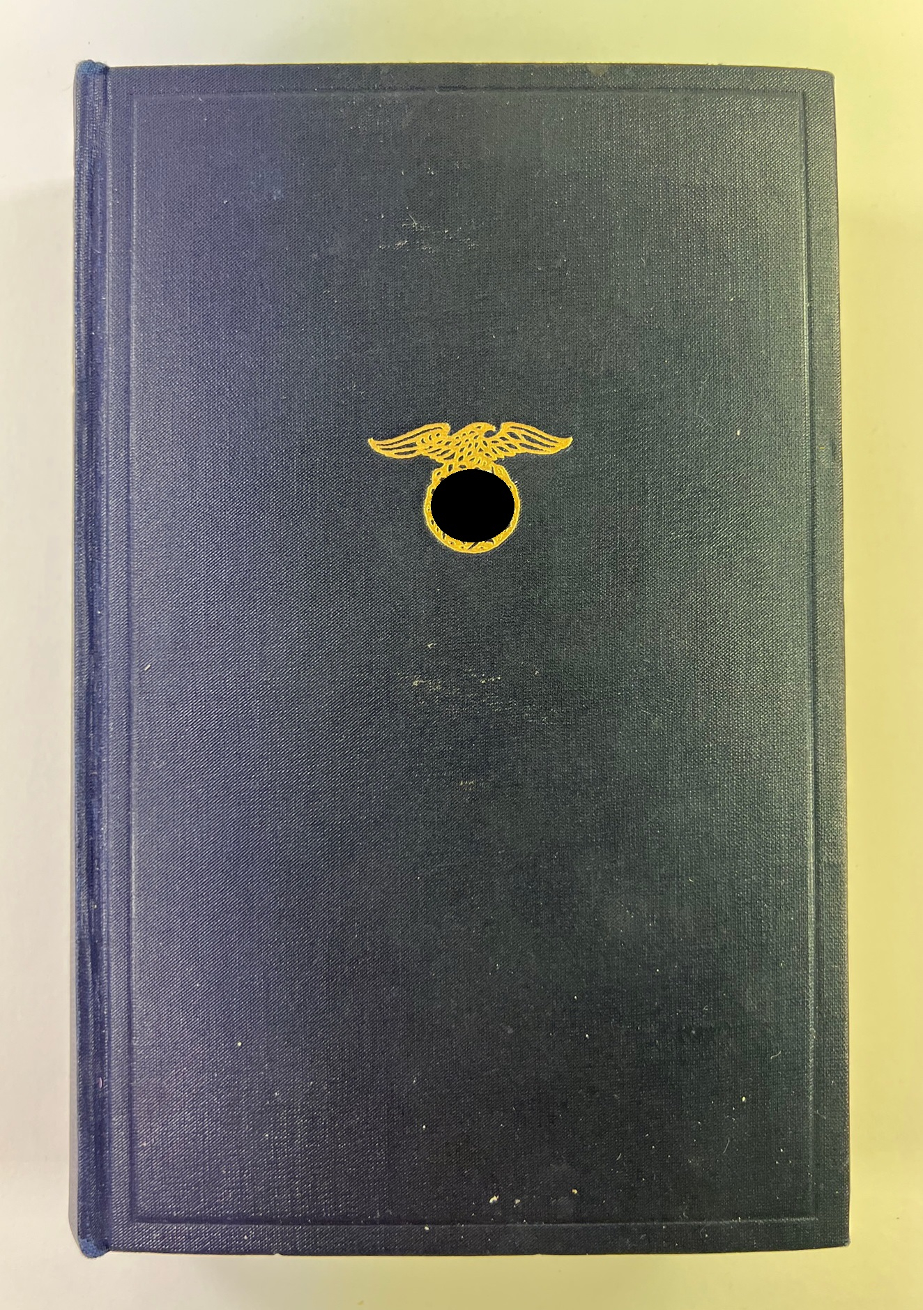 Sehr guter, nur minimal gebbrauchter Zustand. Vollständig 781 Seiten mit Führerbild und Seidenpapier. Zentralverlag der NSDAP. Franz Eher Nachf., GmbH., München, 424.-428. Auflage 1939. Original Ganzleineneinband mit goldgeprägten Rückentitel und Hoheitsadler mit Hakenkreuz.
