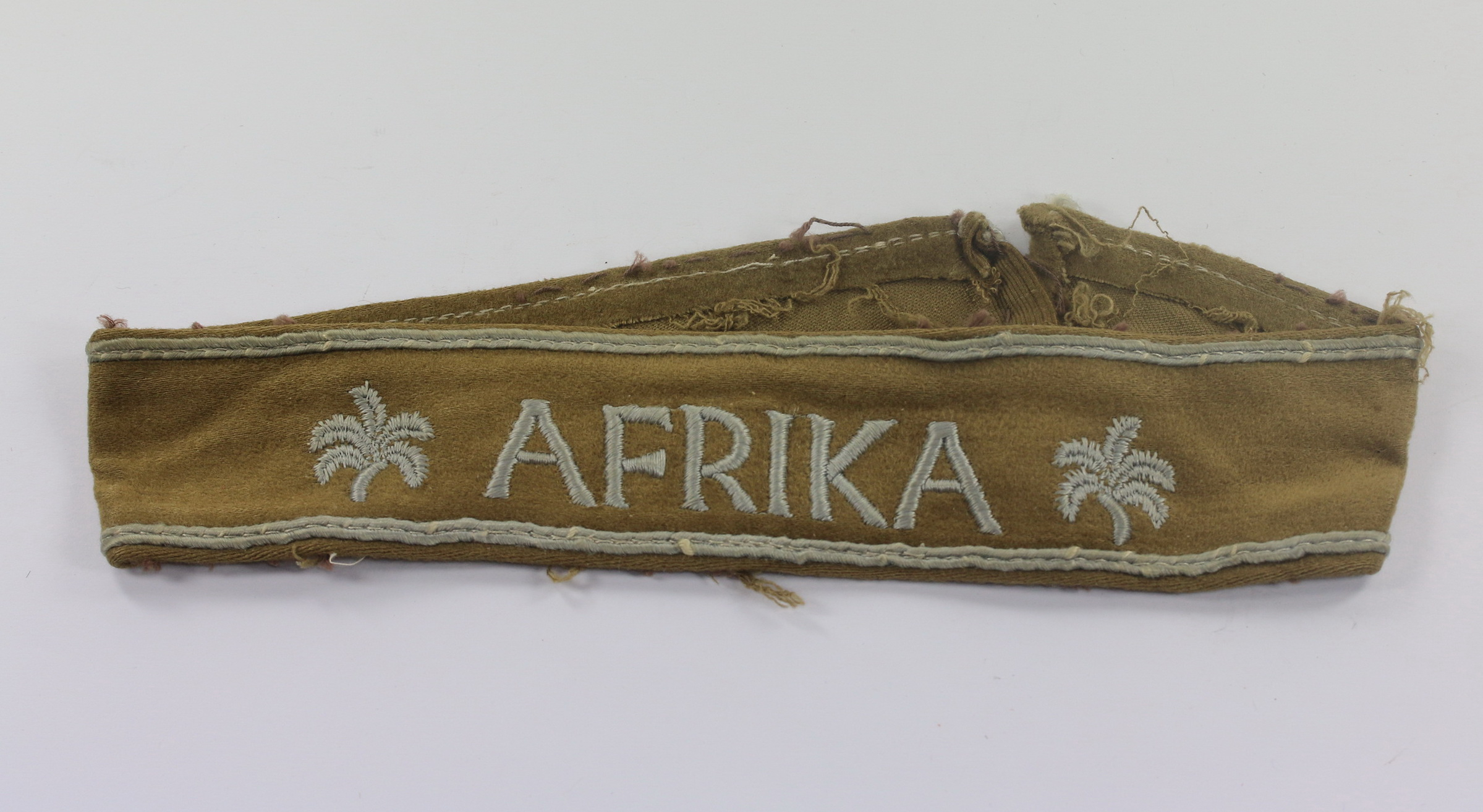 The Africa sleeve band was worn on the uniform on the left forearm above the cuff. The Africa sleeve band should not be confused with the Afrika Korps sleeve band. The Afrika Korps cuffband did not represent an award, but was the association badge of the German Afrika Korps (DAK) and could be worn by all members of the association. It is therefore much more common than the Africa cuff.