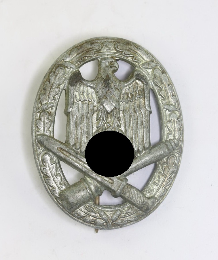 Zink, sehr guter, leicht getragener Zustand. Mit fast vollständiger Versilberung und leichten Ansätzen von Patina. Ohne Hersteller Markierung, aber eine bekannte Variante der Firma Berg & Nolte, Lüdenscheid (B&NL). Siehe GCA-Datenbank.