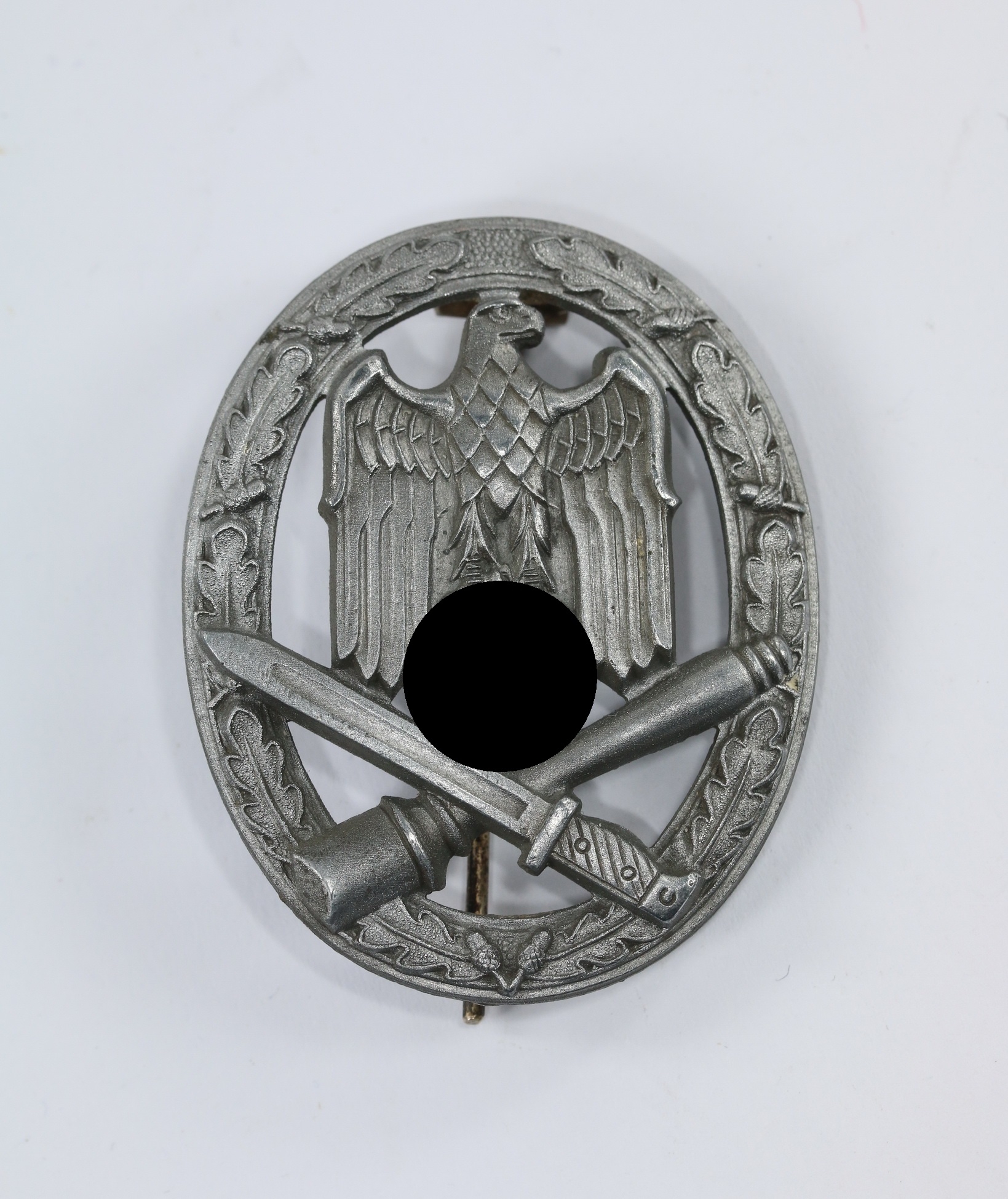 Zink, sehr guter, ungetragener Zustand. Mit vollständiger Versilberung, mit Leichter Patina. Ohne Hersteller, aber eine bekannte Variante der Firma C.E. Juncker, Berlin. Siehe GCA-Datenbank.