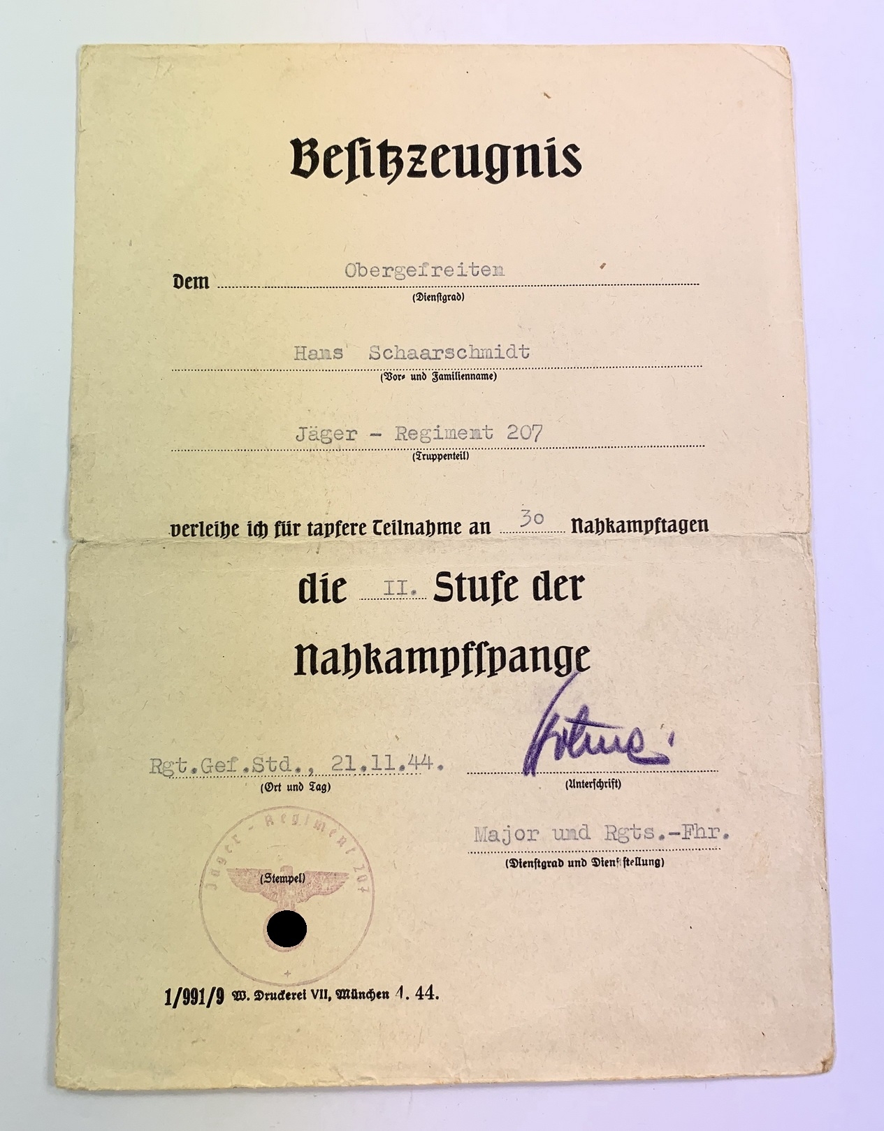 Folded once and in a very good, slightly used condition. Awarded for 30 days of Close Combat.
