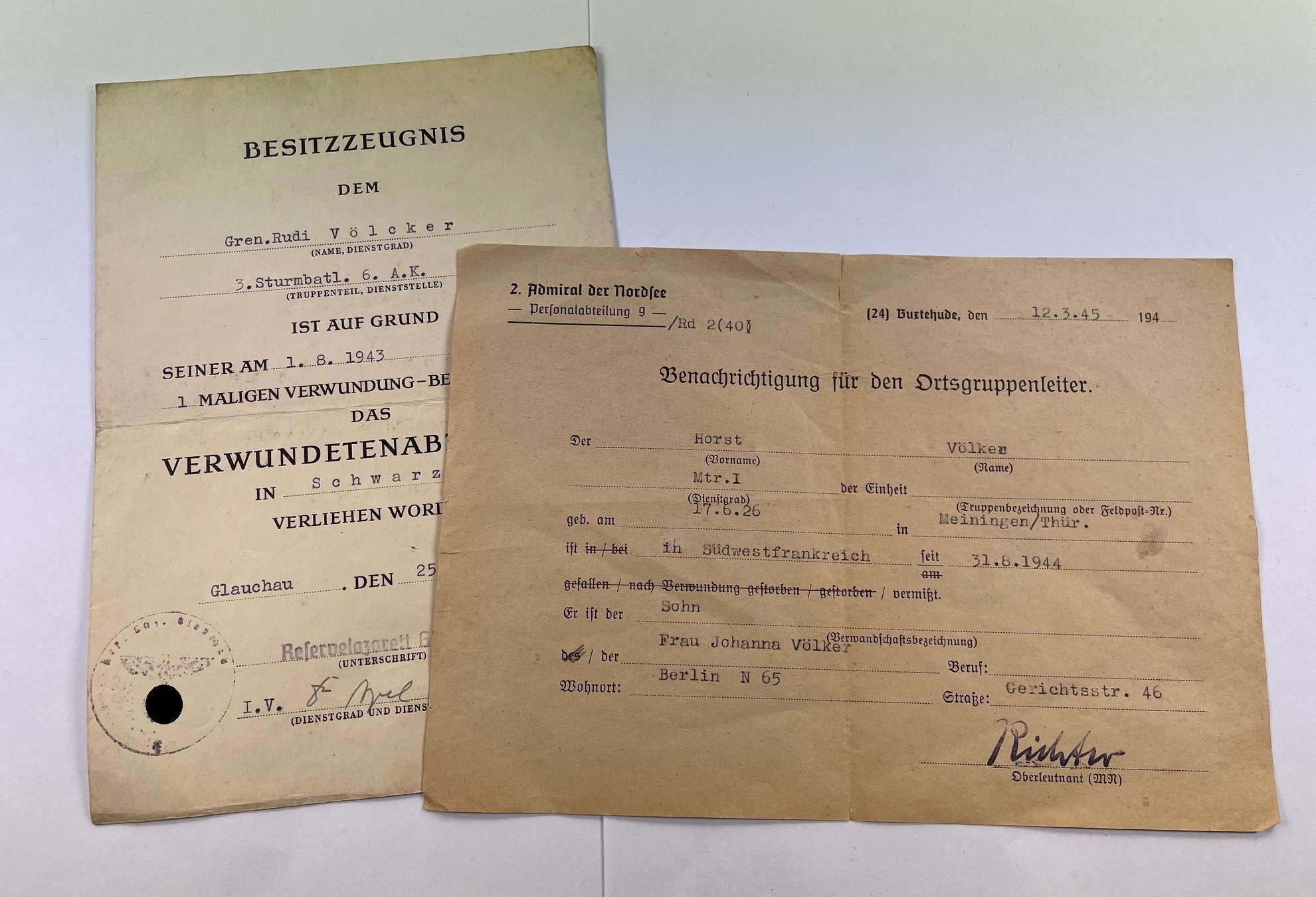Document for the Black Wound Badge. Sturmbataillon 6. A.K.