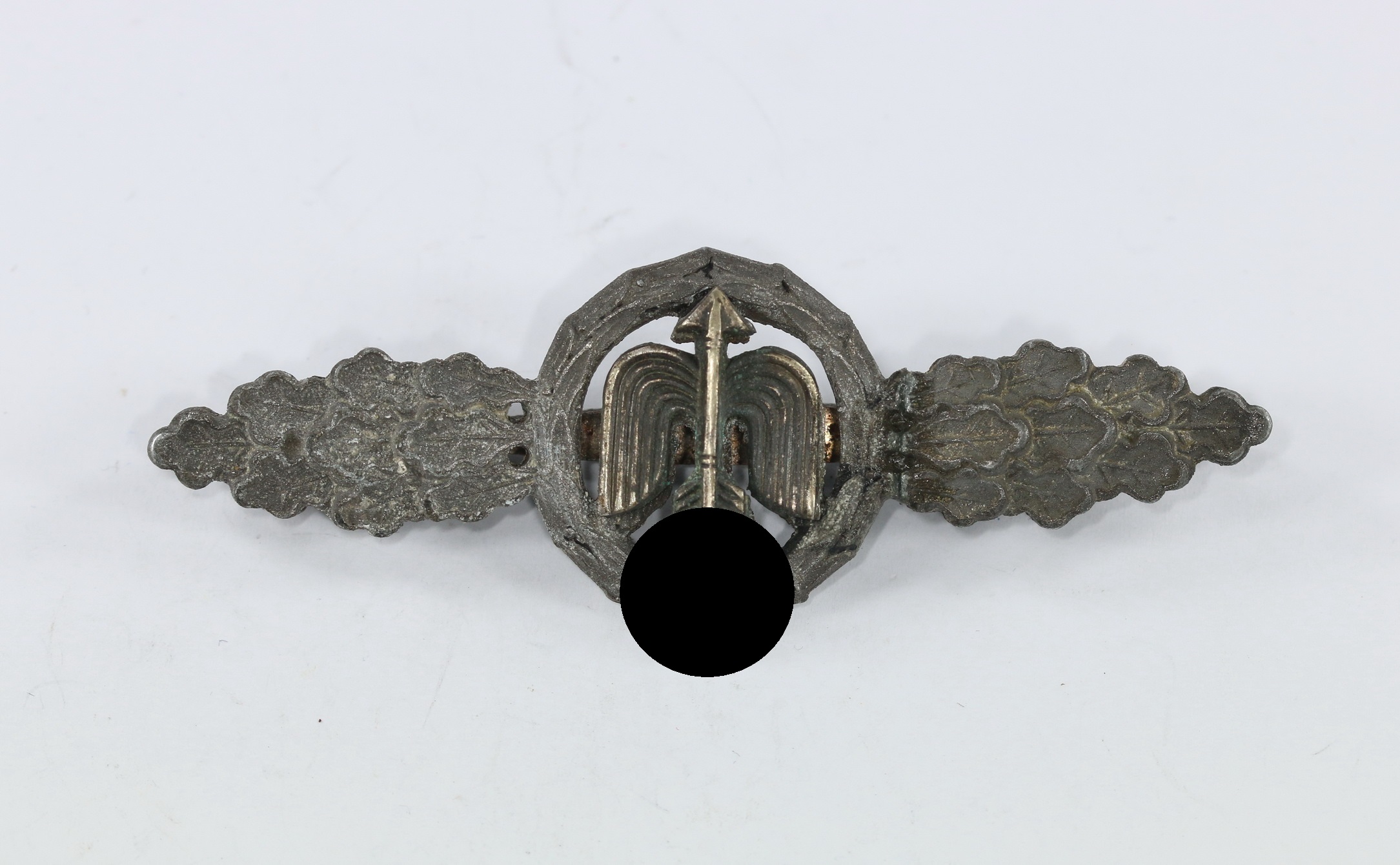 Zink, rechts am Kranz gebrochen und geklebt(!), guter getragener Zustand. Ohne Hersteller, aber eine bekannte Variante!