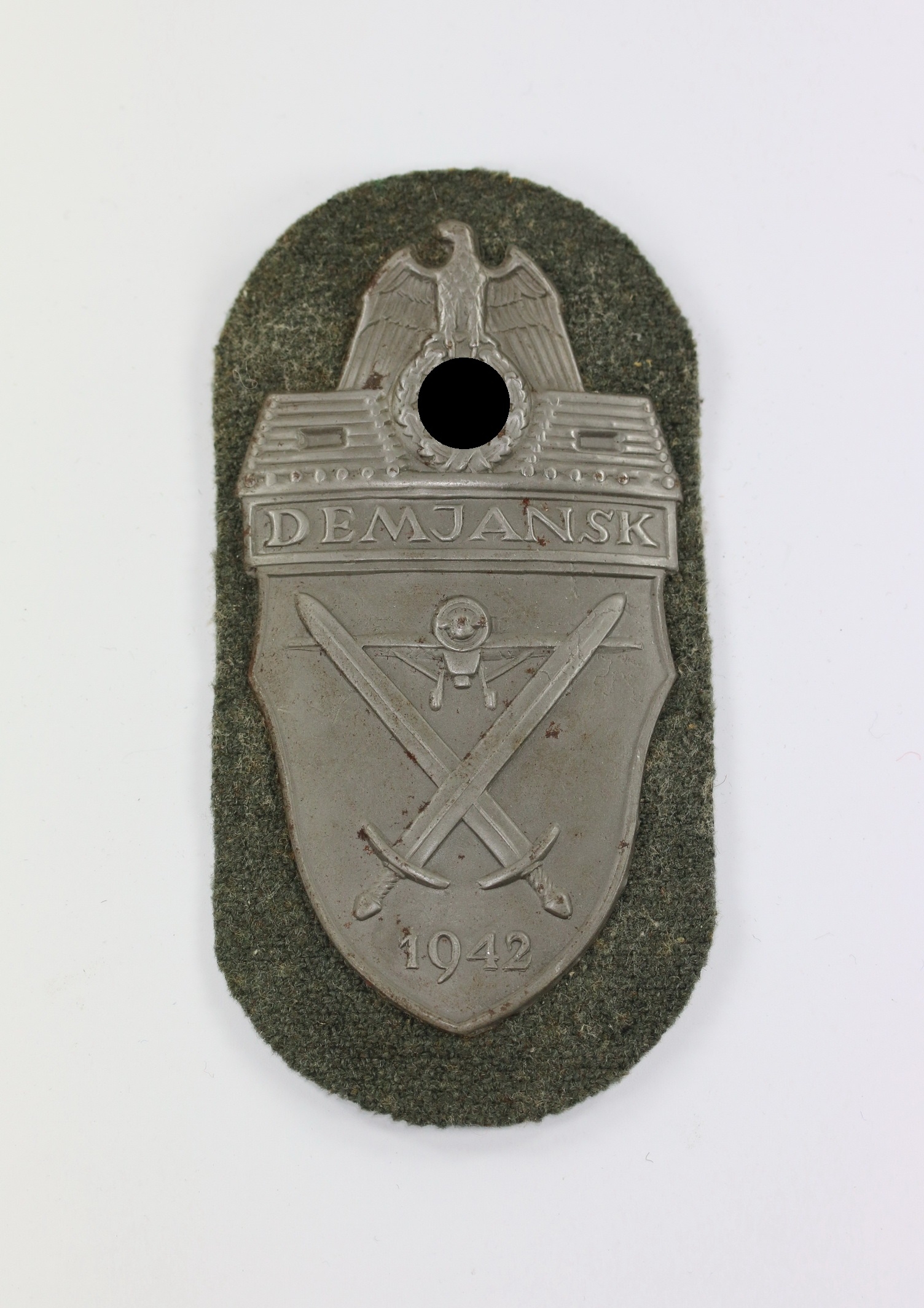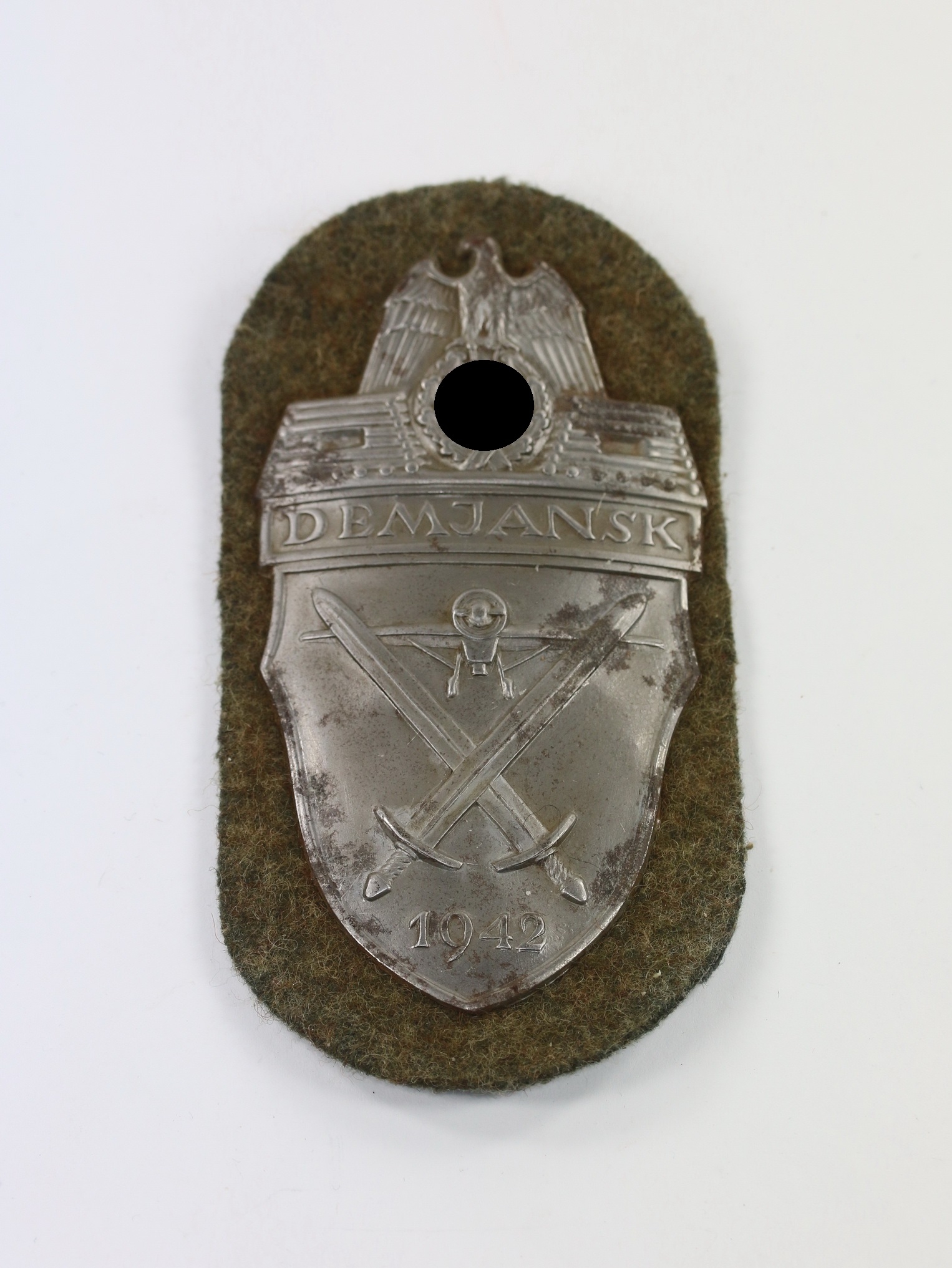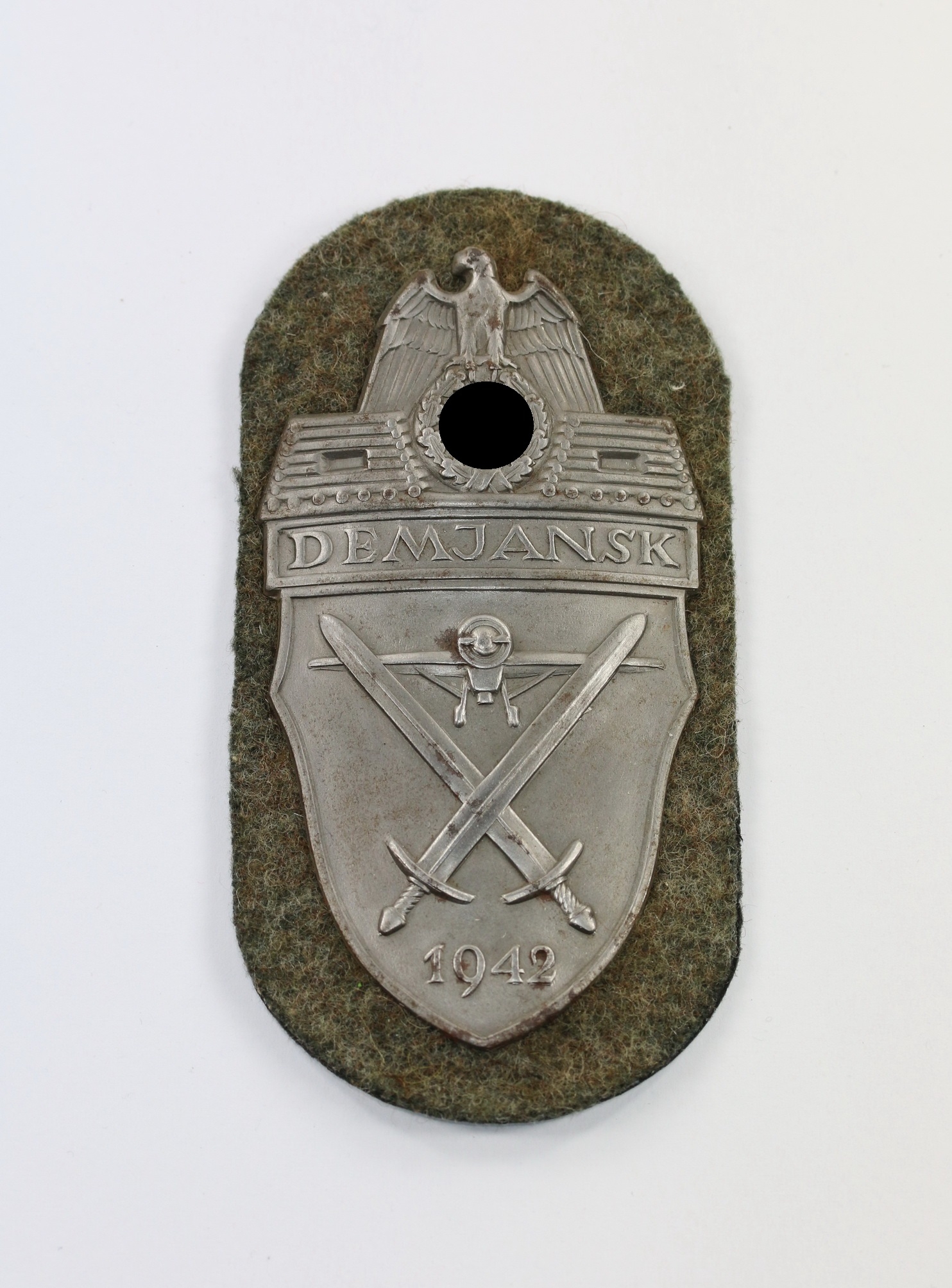 Demjansk Shield on Army Cloth. Type „Missing Log“.
