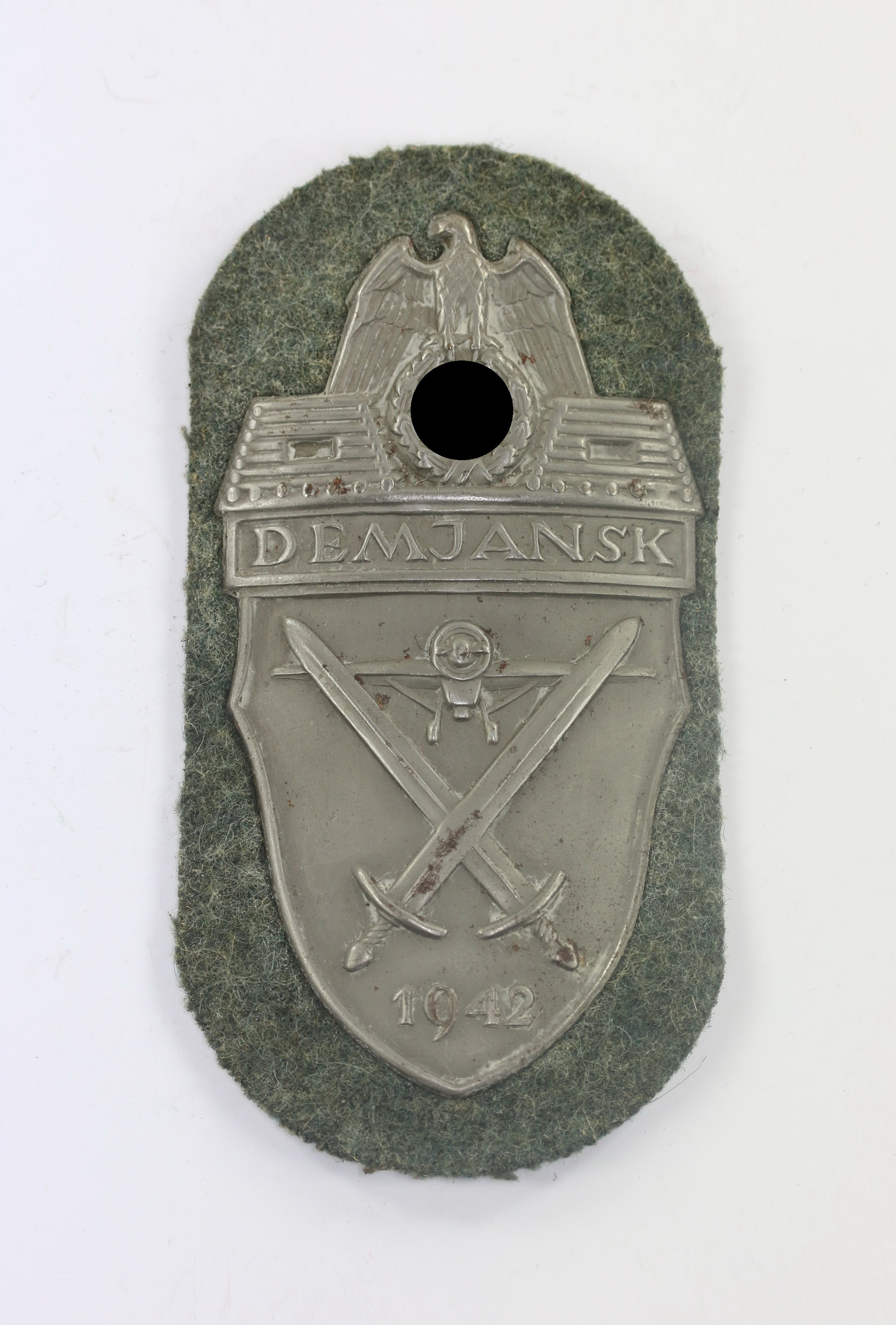 Demjansk Shield on Army Cloth. Type „Missing Log“.