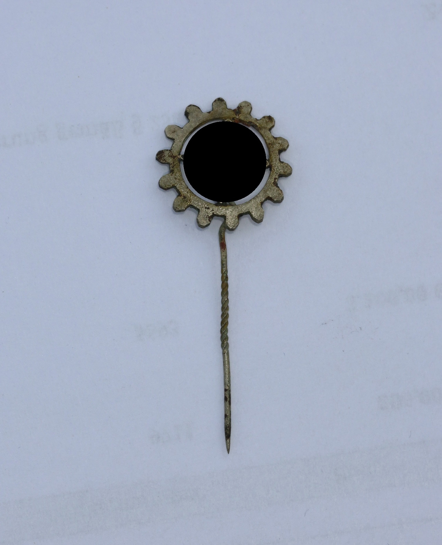 Buntmetall versilbert, sehr guter, nur leicht getragener Zustand. Ohne Hersteller, aber eine bekannte Variante. An Nadel.