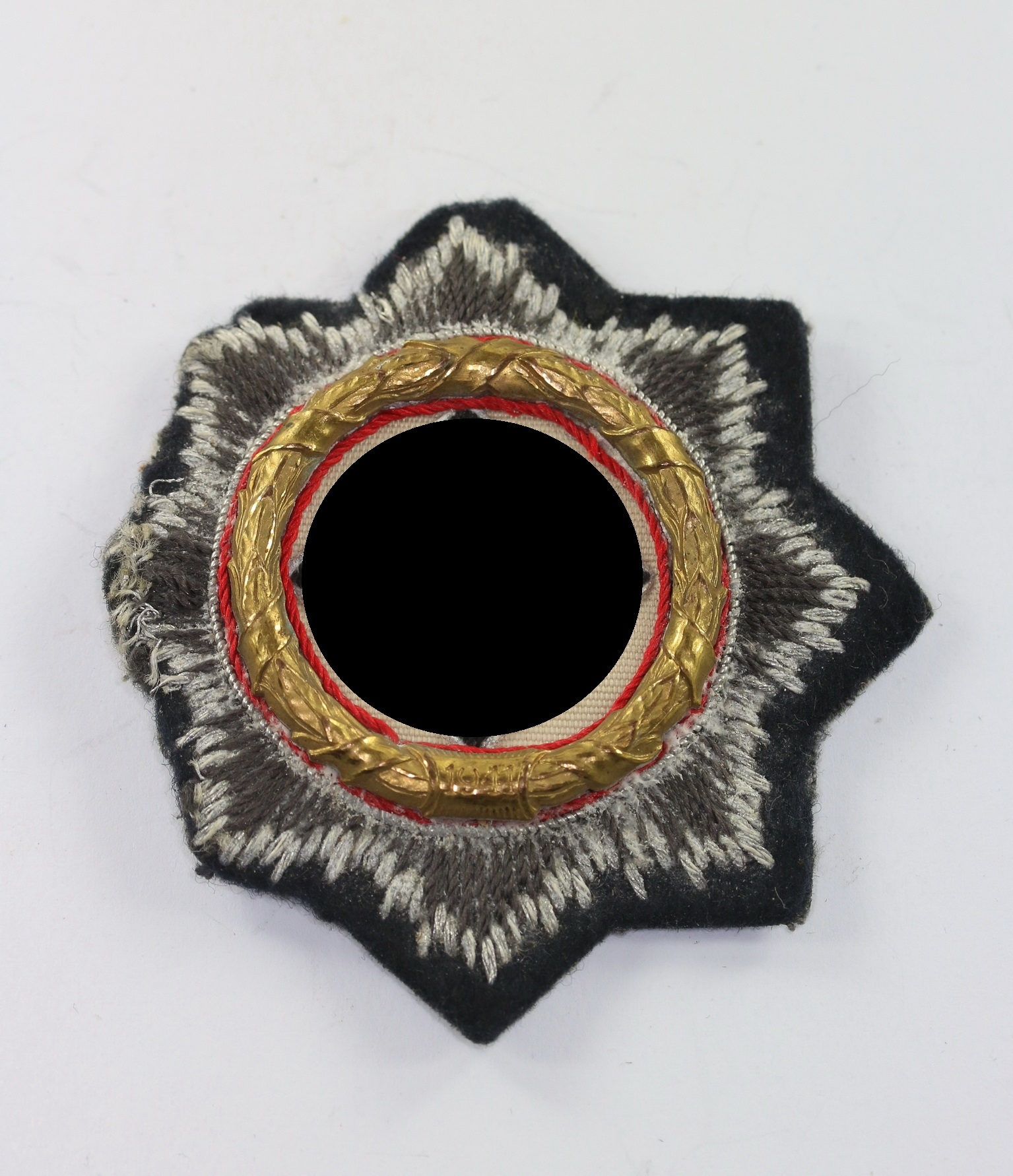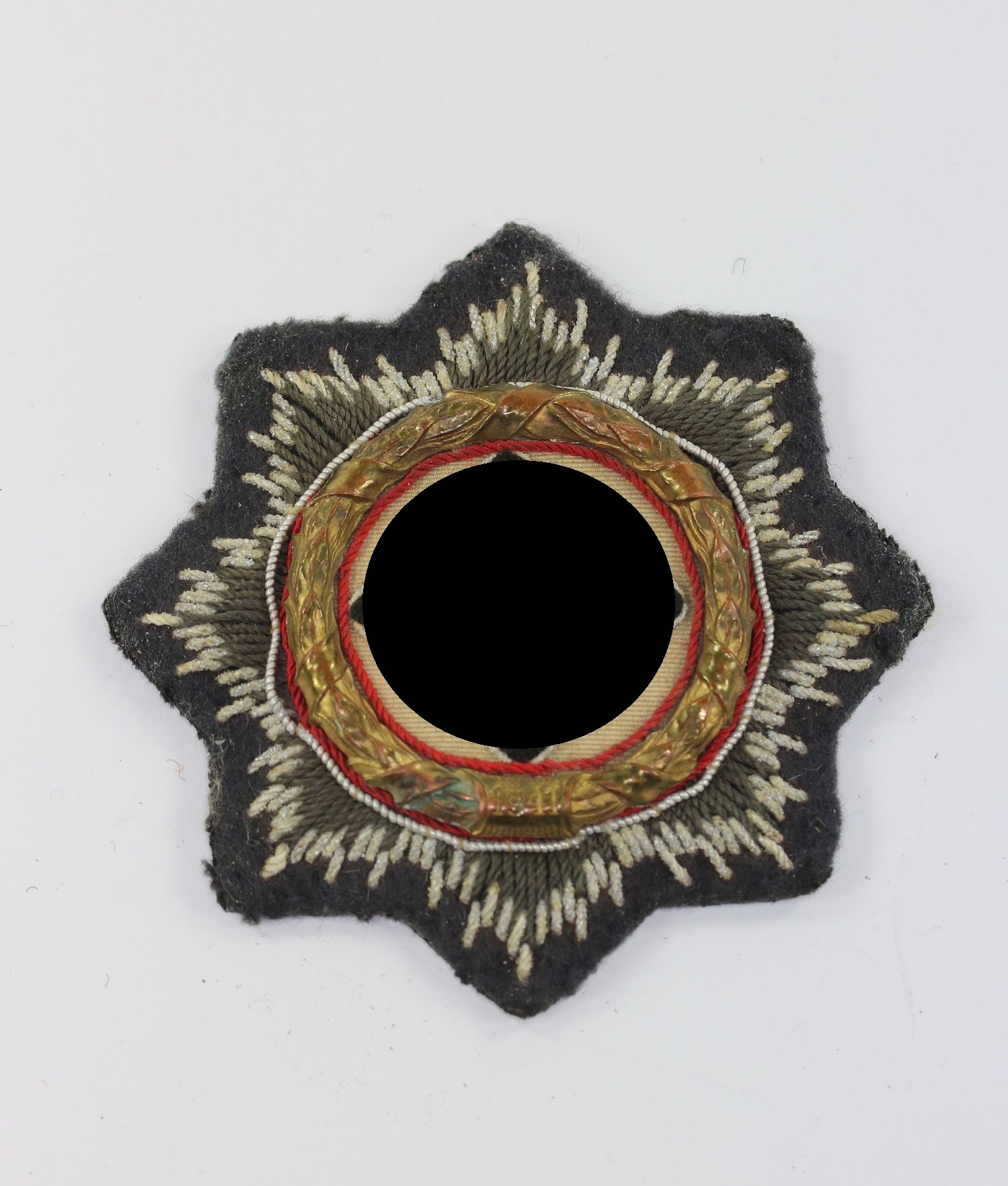 In a very good, unworn condition. The metal wreath with most of the gilt plate. The cross embroided on blue Luftwaffe cloth. Complete with the black paper covering to the reverse. Not marked but a known variation.