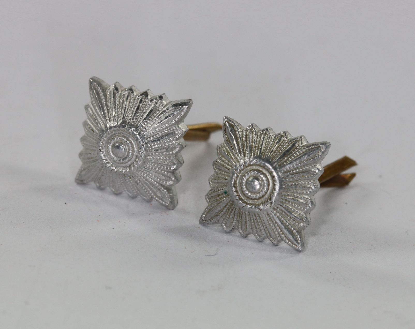 Aluminium versilbert, sehr guter ungetragener Zustand. Die Splinte vollständig und unversehrt. Mit Hersteller „OLC“ für die Firma Overhoff & Cie, Lüdenscheid.
