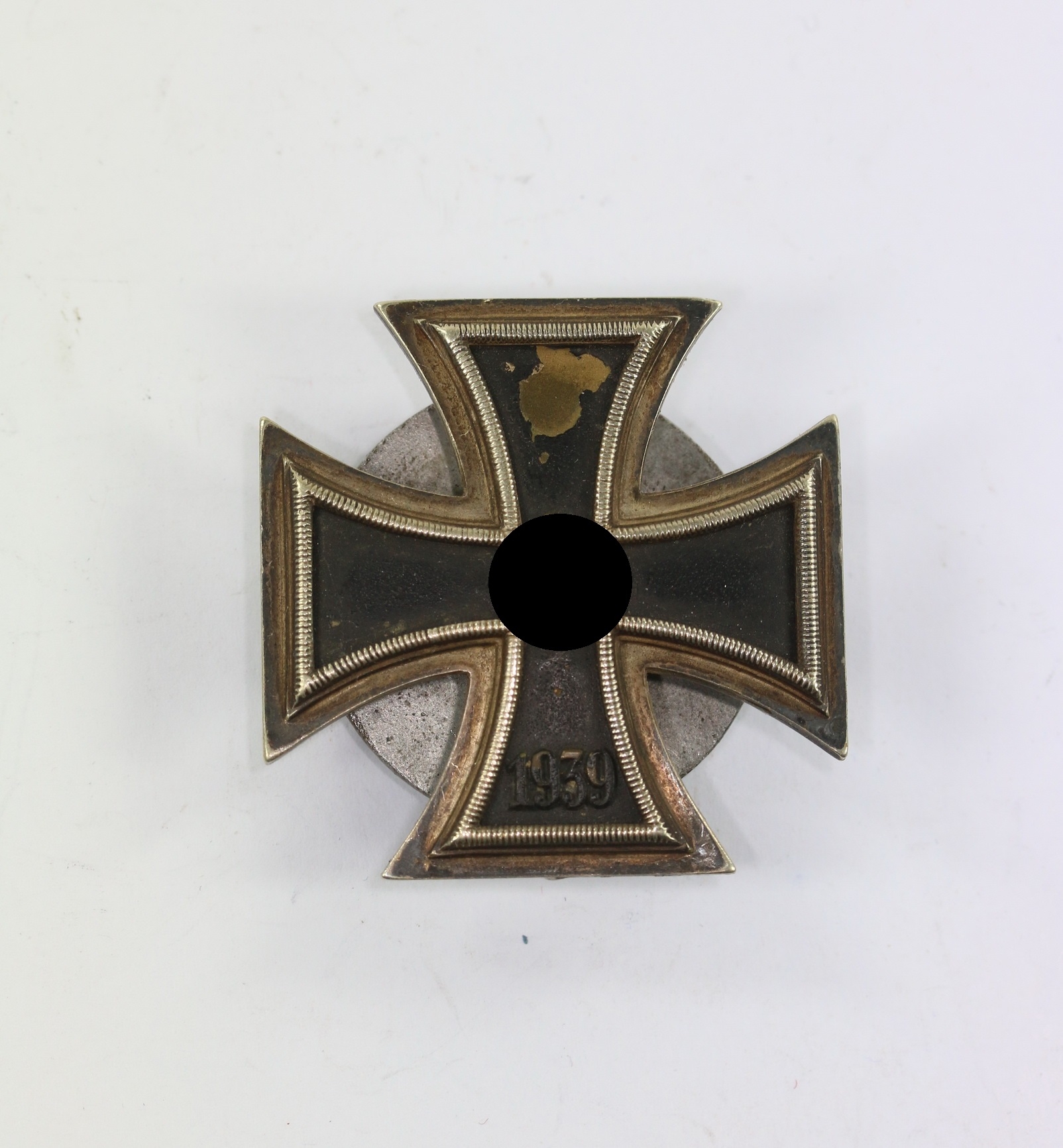 Nicht magnetisches Kreuz, vom Träger zeitgenössisch auf Schraubscheibe umgebaut. Guter, getragener Zustand.