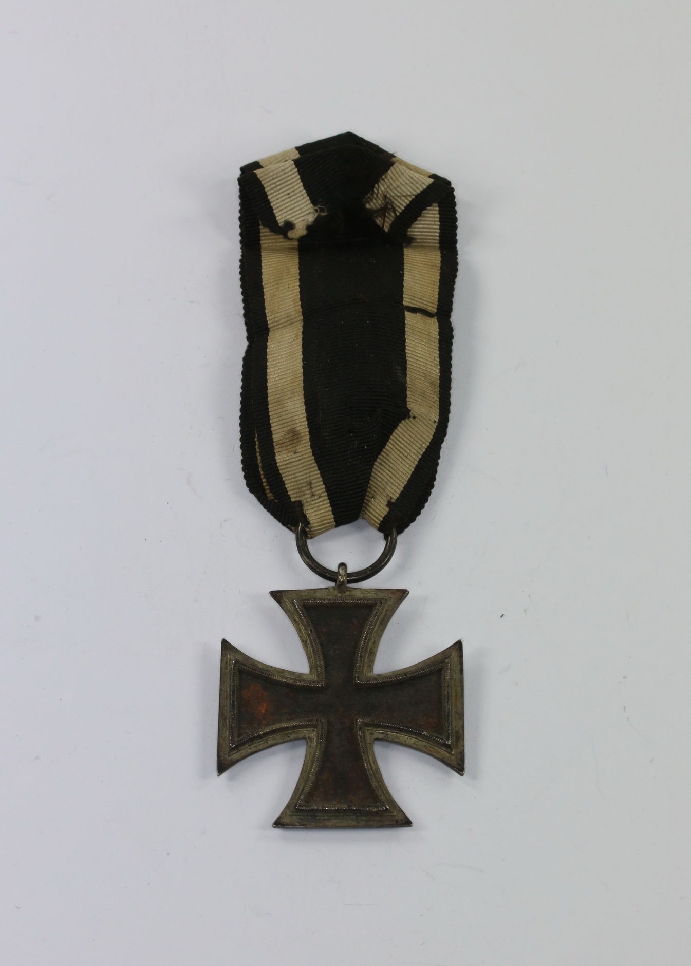 Nichtgestufter Eisenkern der Berliner Eisengießerei, der zweiteilige Rahmen aus Silber. Sehr guter, nur minimal getragener Zustand. Der Eisenkern nicht gebrochen und mit noch sehr schöner Schwärzung. Mit sehr schöner, absolut unberührter Patina. Verliehenes Stück der zweiten Verleihungswelle ab 1834. Siehe Frank Wernitz, „Das Eiserne Kreuz 1813 – 1870 – 1914, S. 31, Typ 19. Am langen (ca. 15 cm), originalen 35 mm breiten Band.