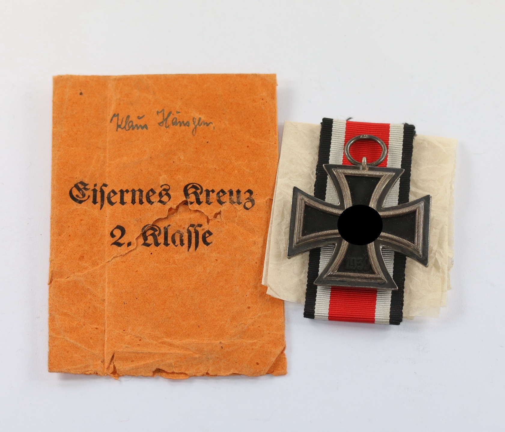 Eisernes Kreuz 2. Klasse 1939, Hst. 24, in kleiner (!), oranger (!) Verleihungstüte