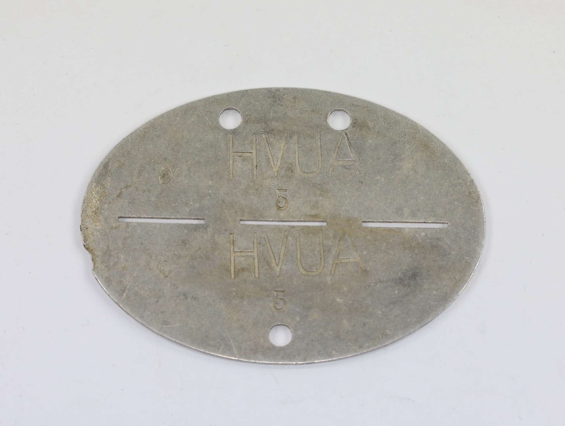 Aluminium, sehr guter, nur leicht getragener Zustand. Groß „HVUA“ für Heeres-Veterinäruntersuchungsamt.