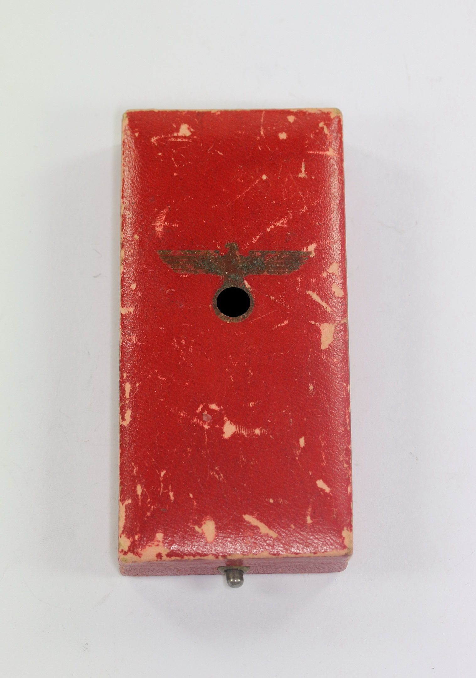 Sehr guter, etwas gebrauchter Zustand. Mit in gold eingeprägten Hoheitsadler auf den Deckel.