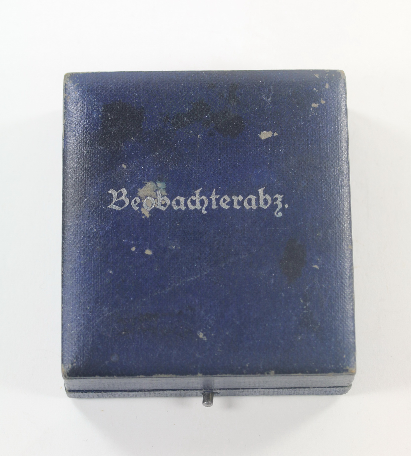 In a very good, slightly used condition. Embossed in silver on top of the lid with the designation „Beobachterabz.“. The inlet and inside of the lid covered with blue quality sprayed felt.