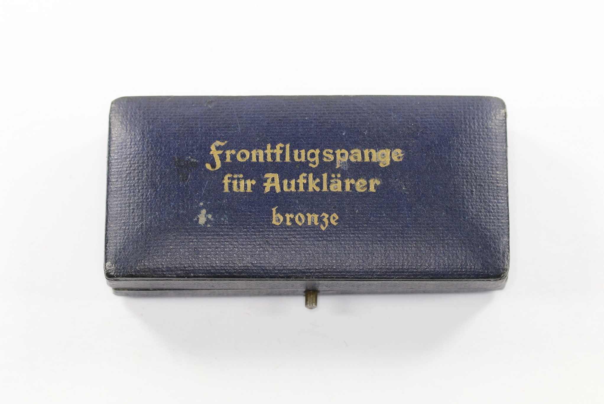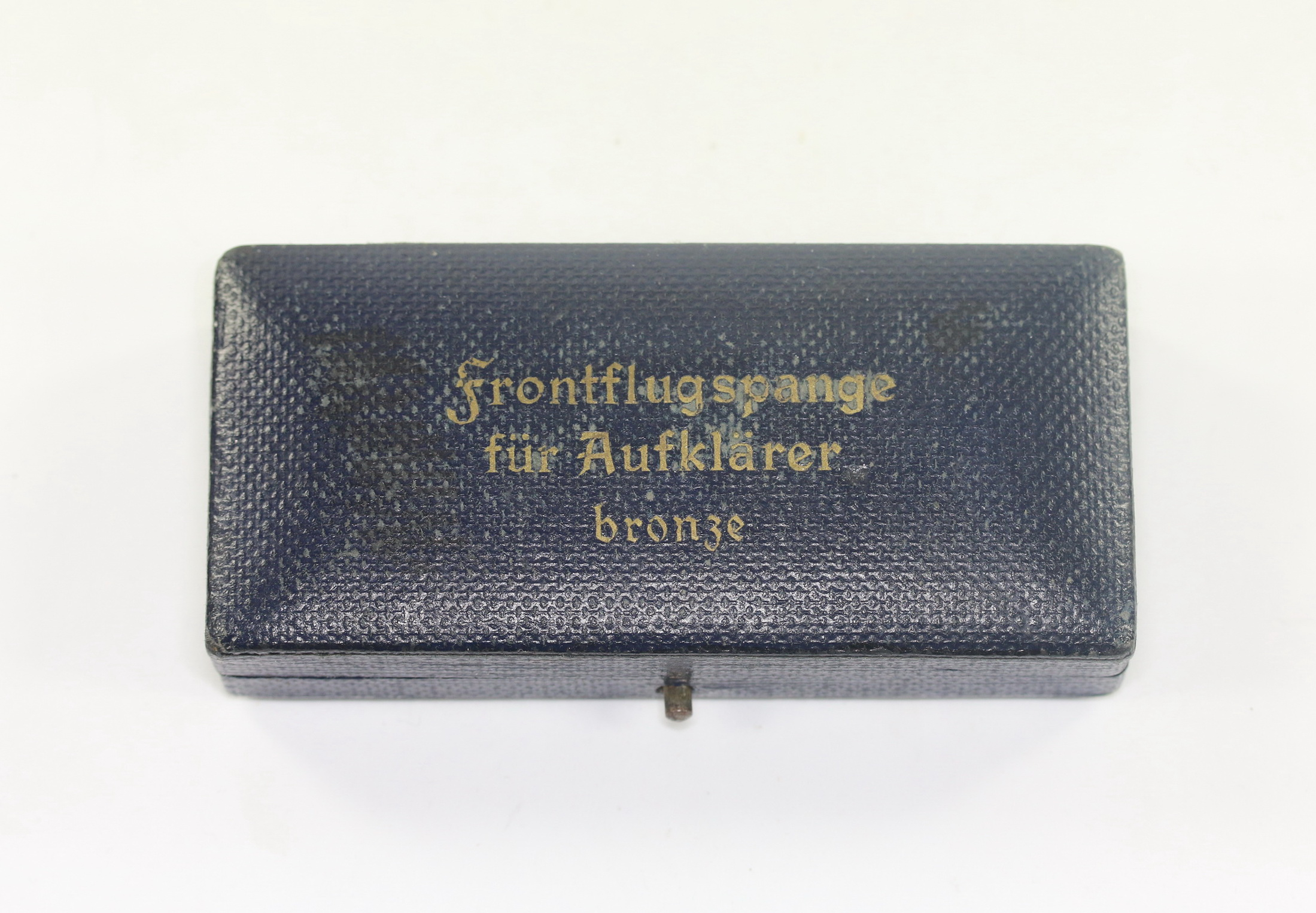 Sehr guter, nur leicht gebrauchter Zustand. Auf den Deckel in Gold eingeprägt „Frontflugspange für Aufklärer bronze“. Frühes Etui für alle Buntmetall Spangen.