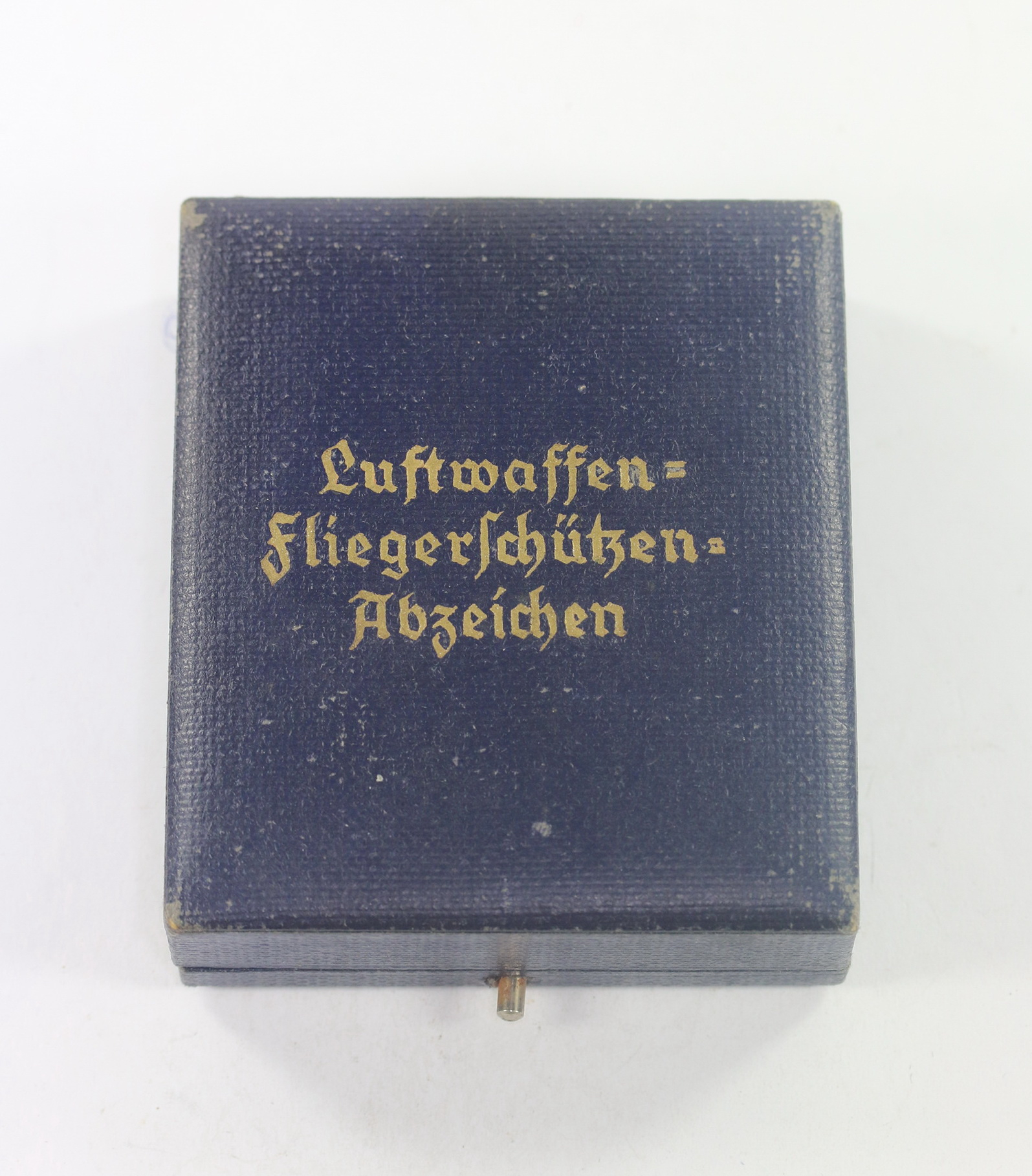 In a very good, slightly used condition. Embossed in gold on top of the lid with the designation „Luftwaffen Fliegerschützen Abzeichen“.