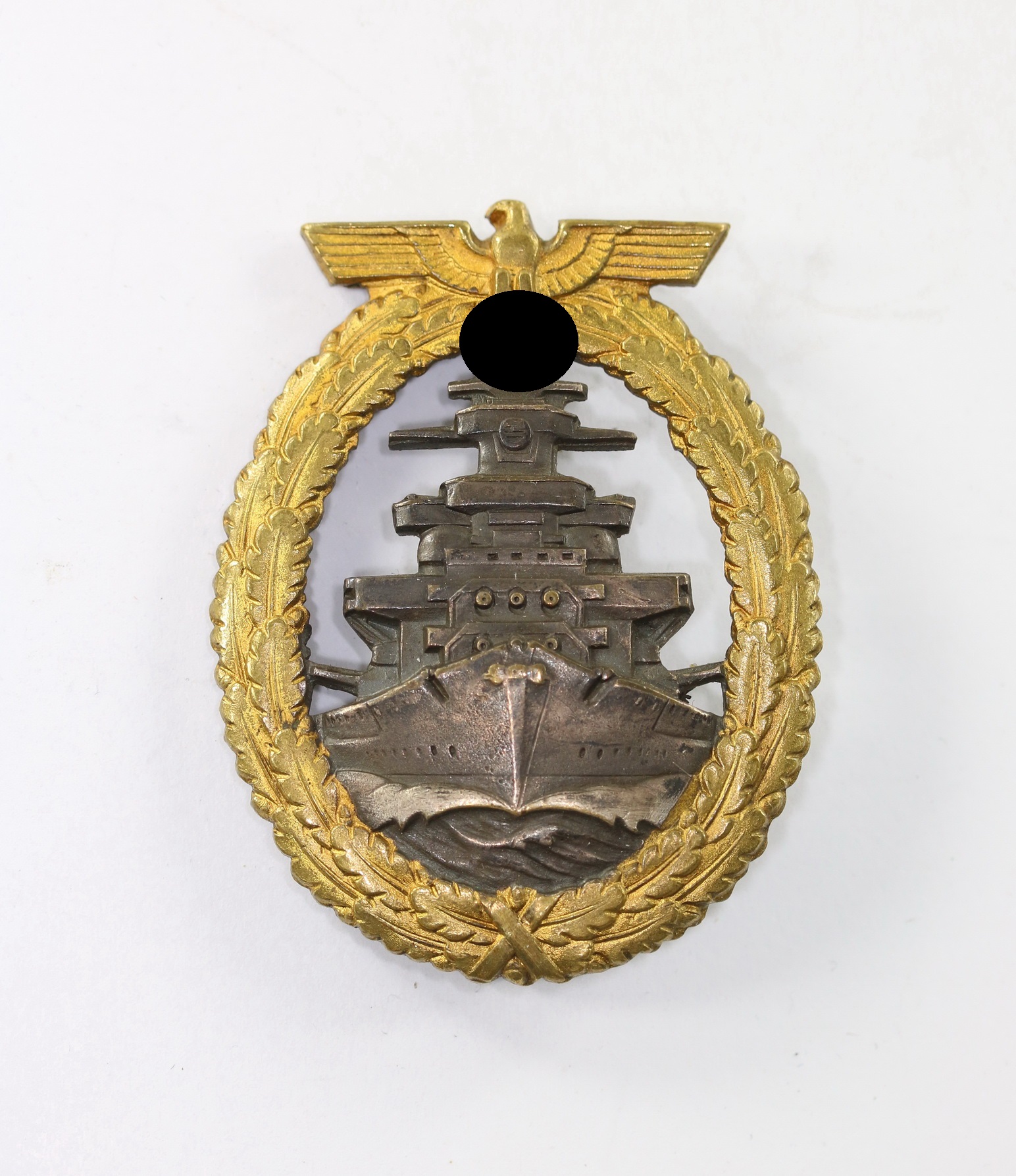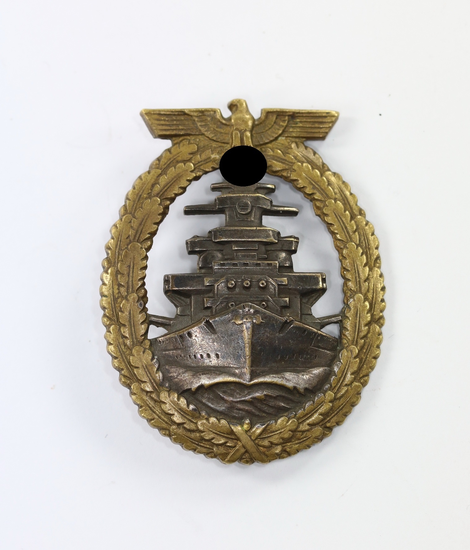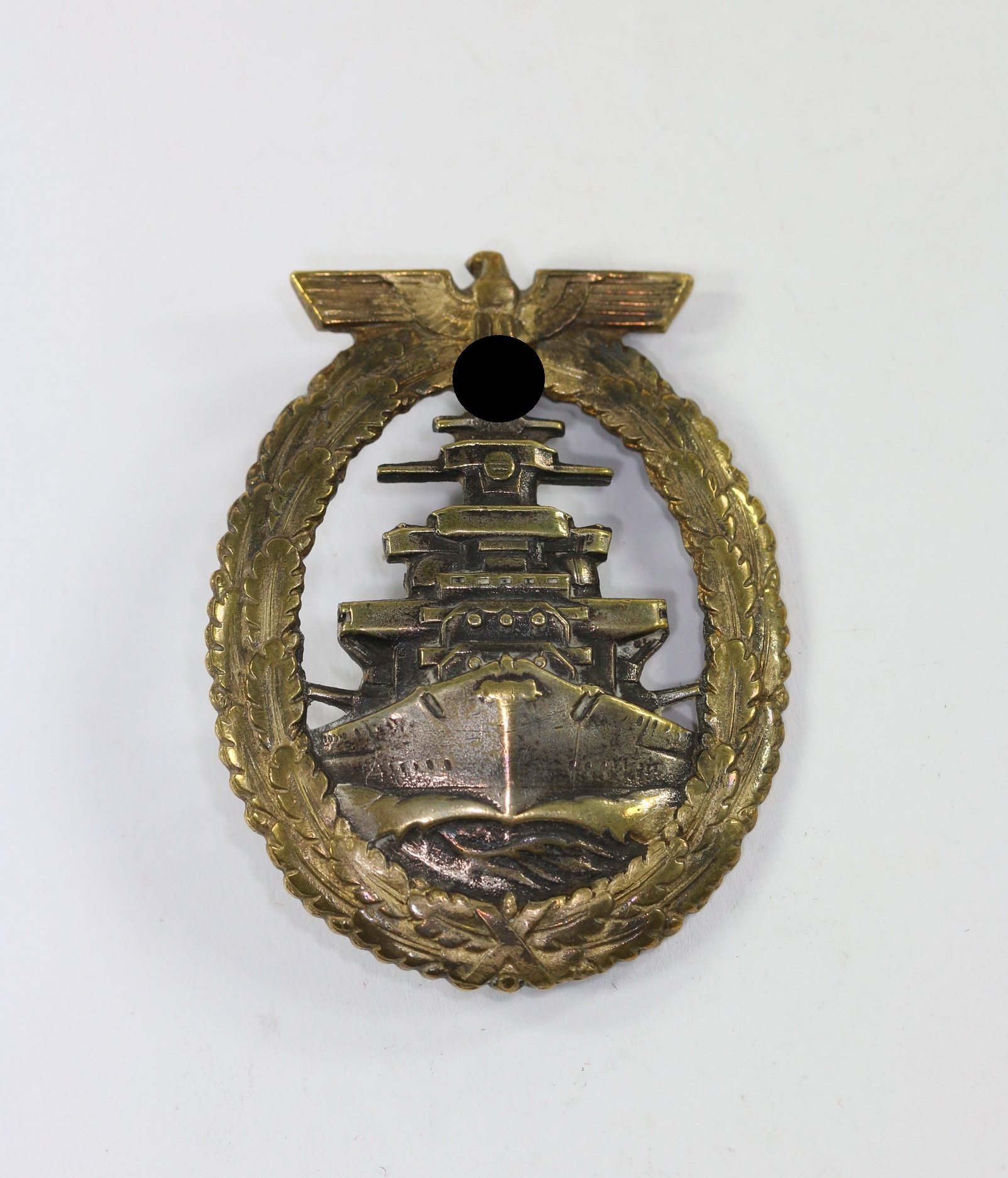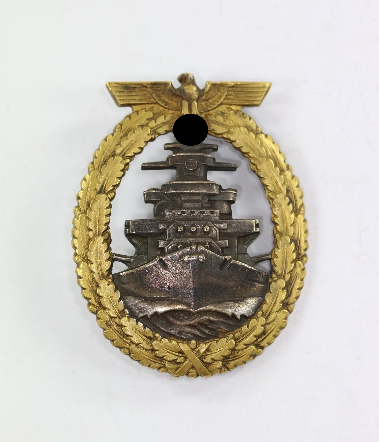 Marked on the reverse with the maker „Schwerin Berlin“. Early manufacture with all five bridge windows and sharp angled reverse profile. See Weber/Skora, The War Badges of the Kriegsmarine.