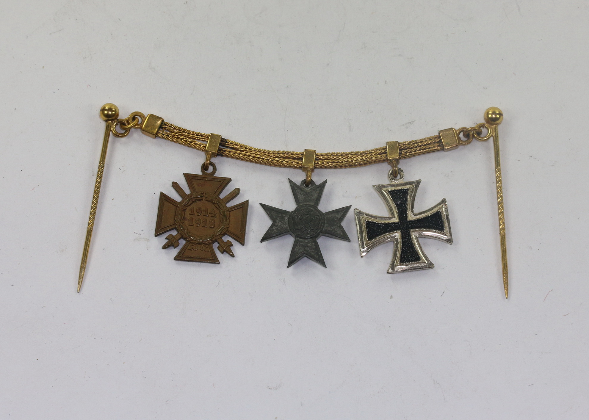 – Ehrendenkmünze des Weltkrieges 1914 „Fürs Vaterland“ mit Bewährungsabzeichen (Schwerter)