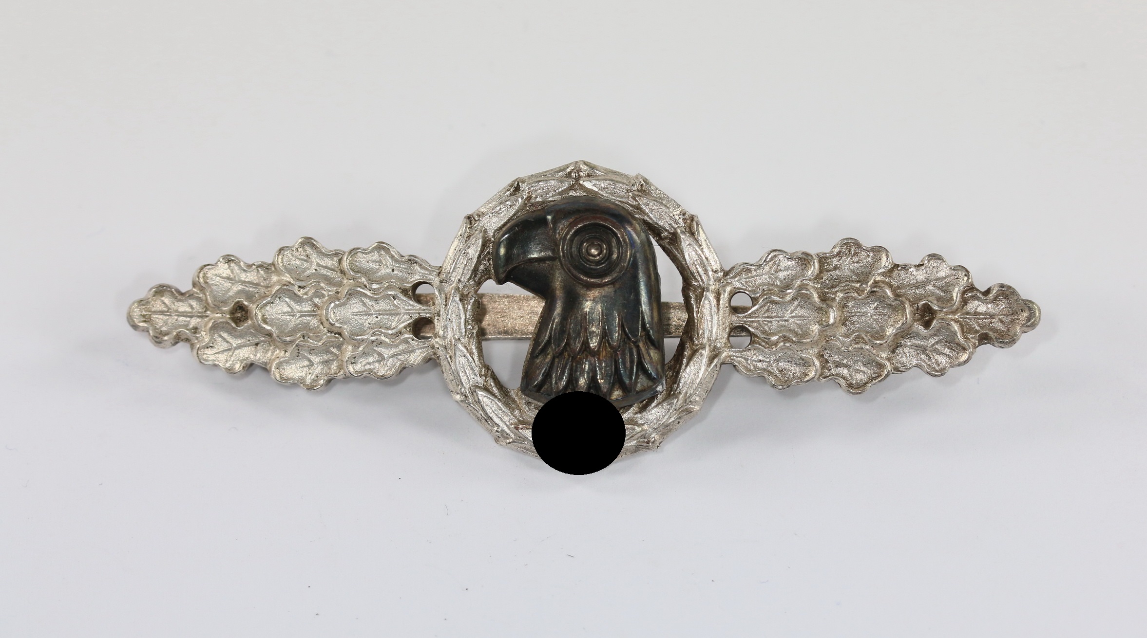 Tombak/ brass based and in a very good, probably unworn condition with all of the matt white silver plate still present. The swastika and high points burnished with some slight patina. The eagle head with practically all of the dark oxidised finish.