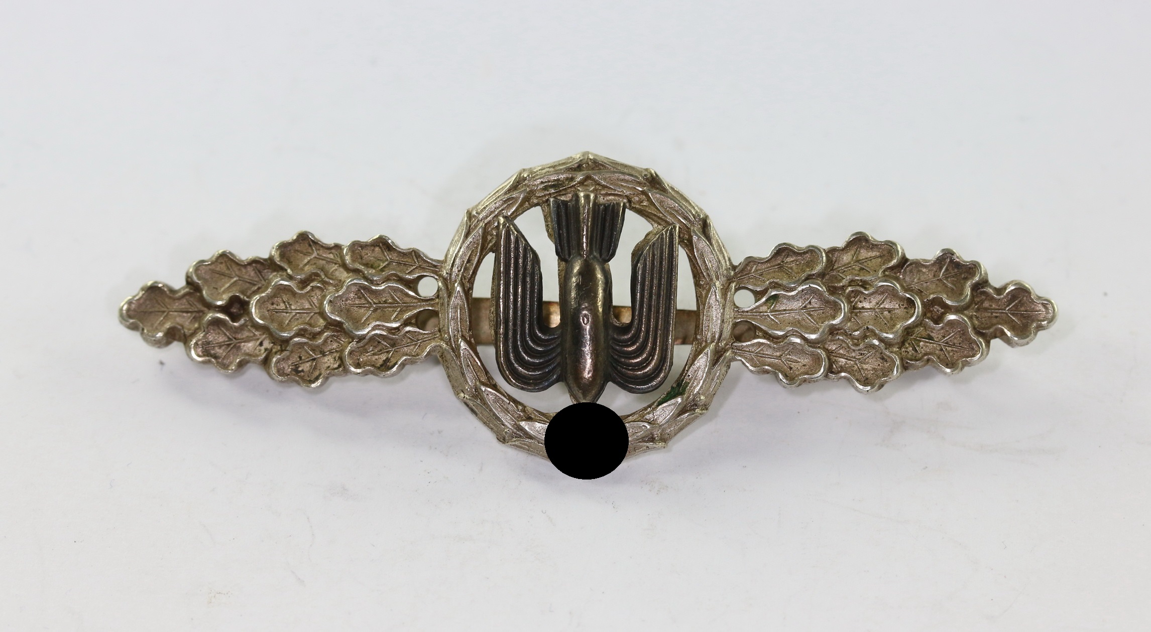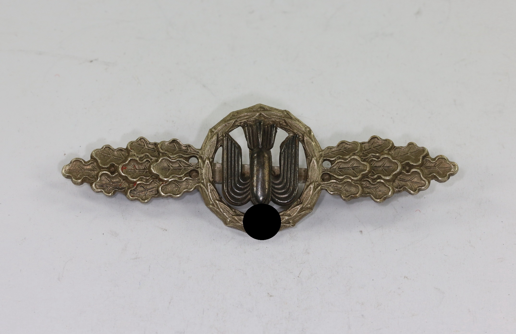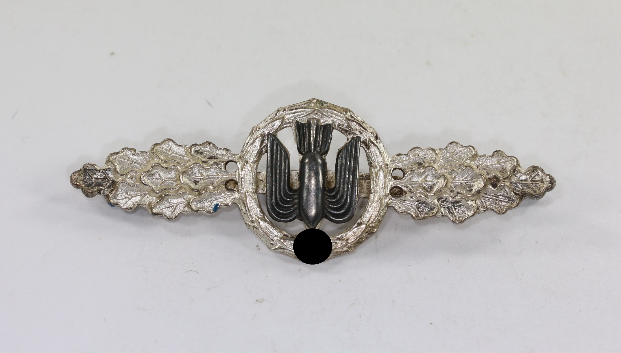 Buntmetall, sehr guter, nur minimal getragener Zustand. Mit vollständiger Versilberung, Hakenkreuz und Kanten poliert. Die Auflage mit fast vollständiger Tönung. Ohne Hersteller, aber eine bekannte Variante.