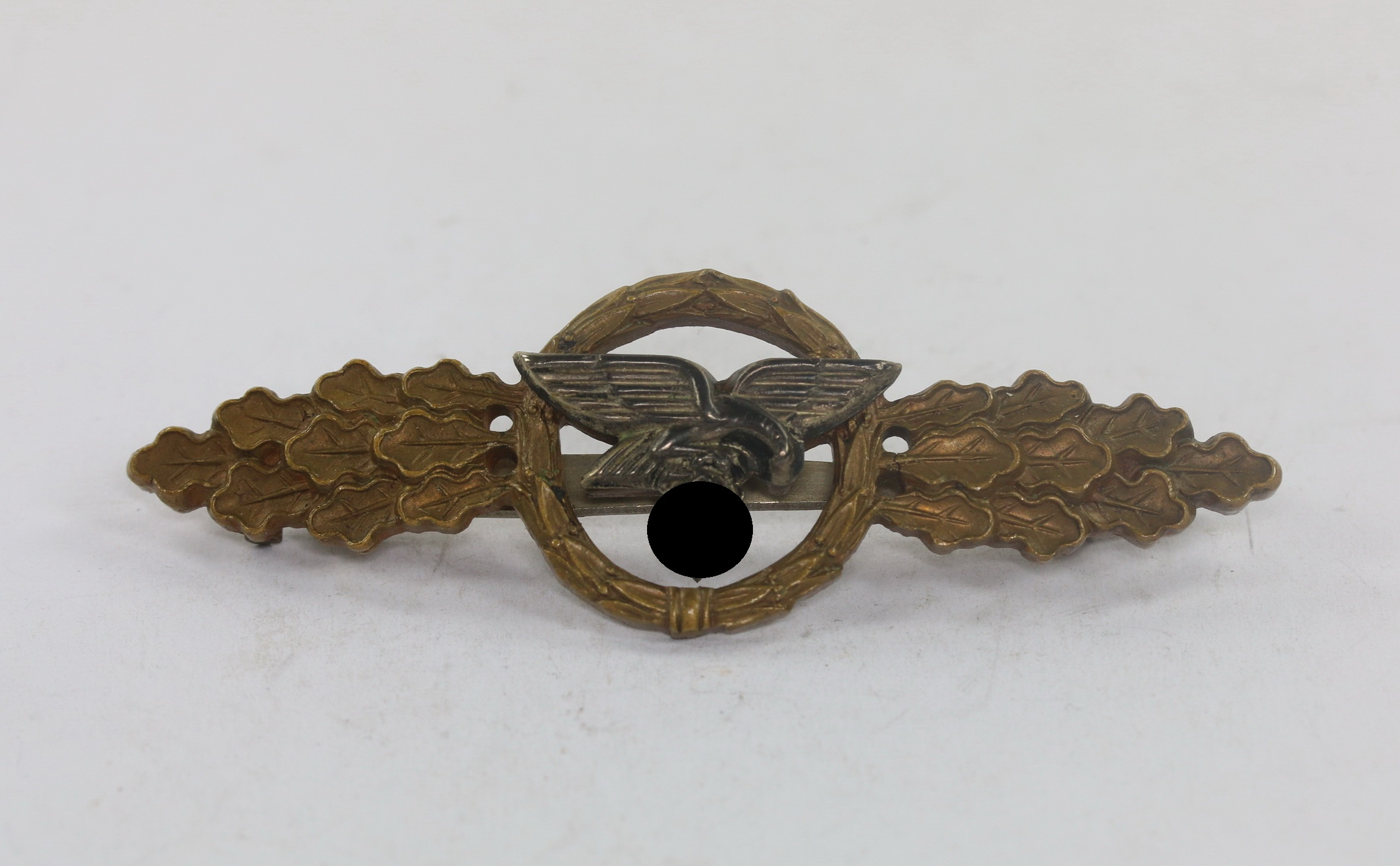 Tombak/brass based and in a very good, slightly worn condition with all of the bronze wash still present. The Luftwaffe type eagle with practically all of the dark oxidised finish.