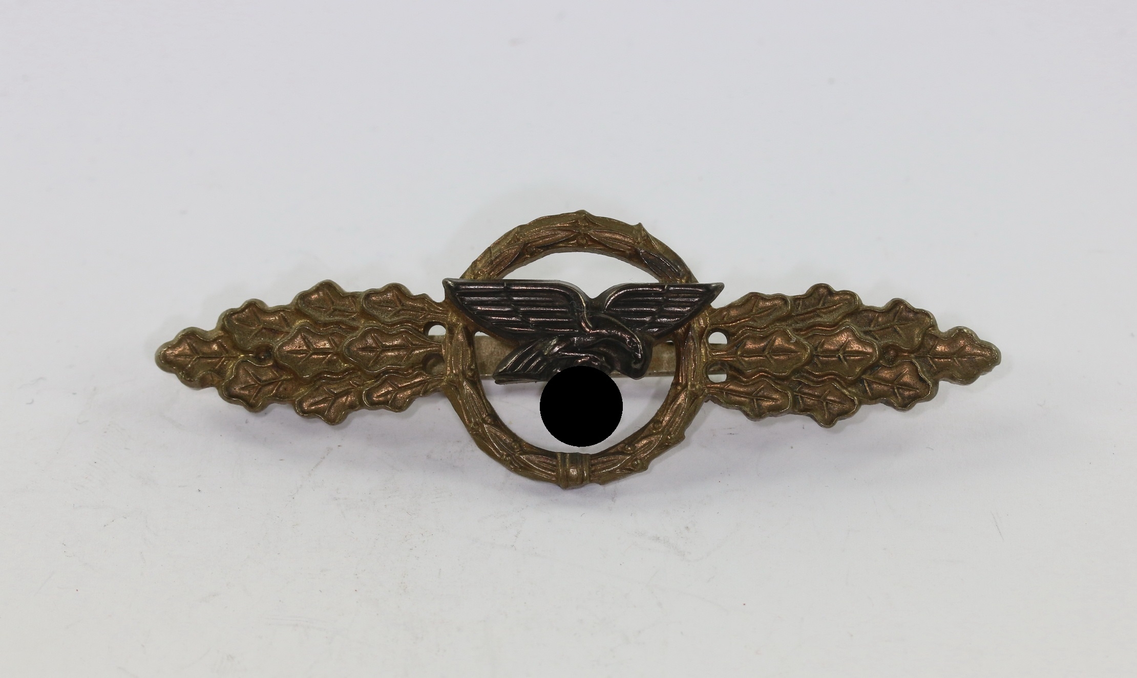Tombak/brass based and in a very good, probably unworn condition with all of the bronze wash still present. The Luftwaffe type eagle device with practically all of the dark oxidised finish.