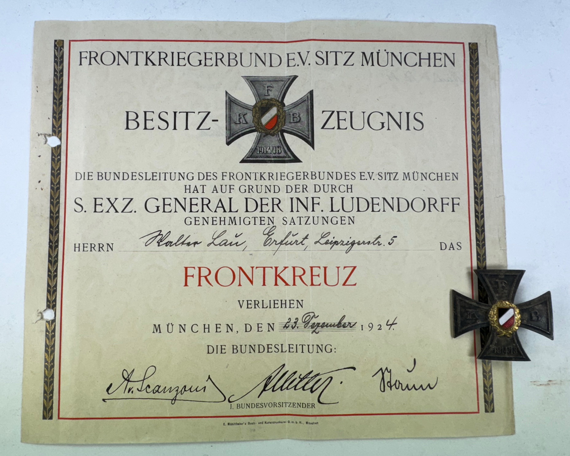 Front Fighter League, Cross of Honour for Frontline Fighters + Document.