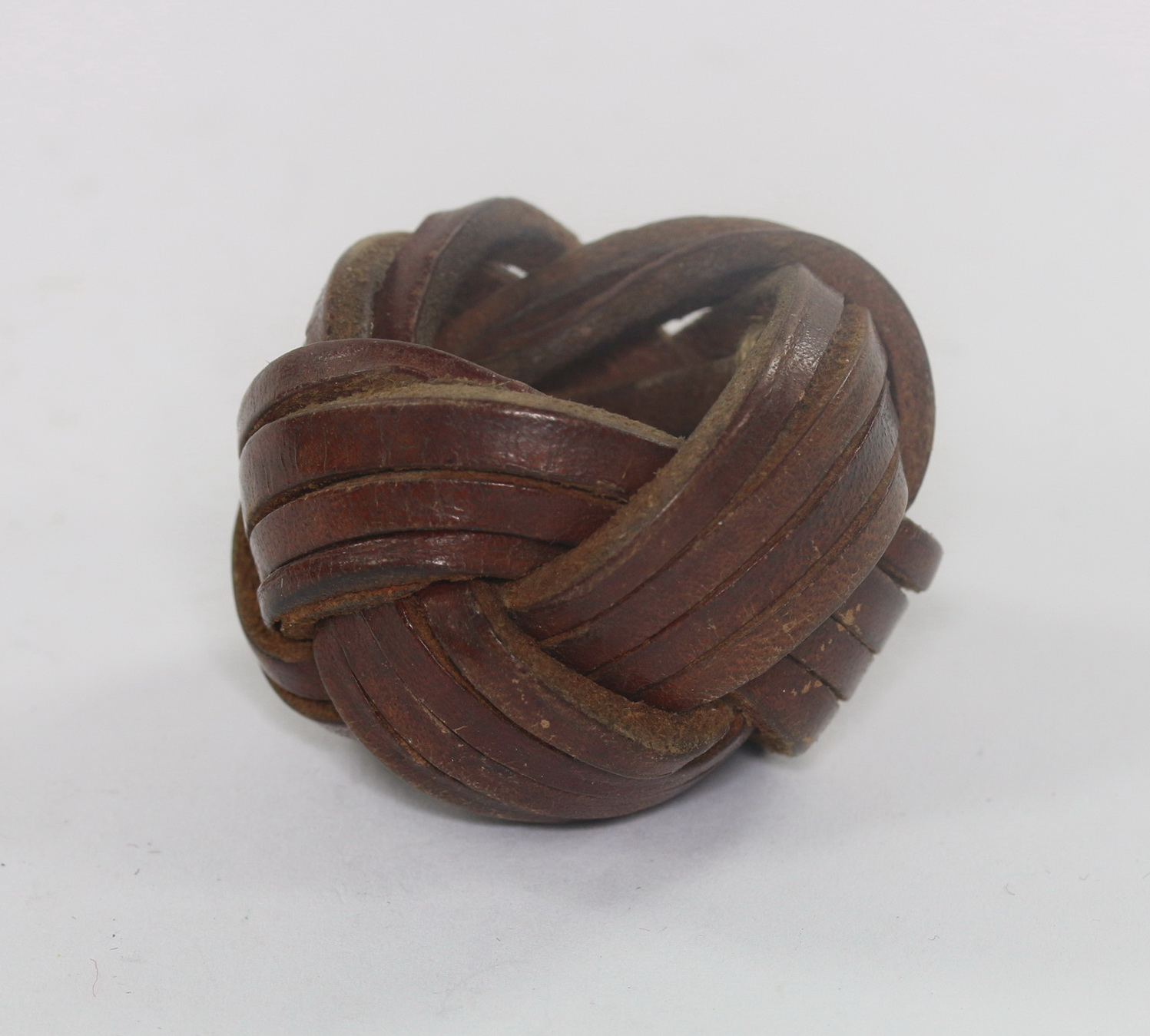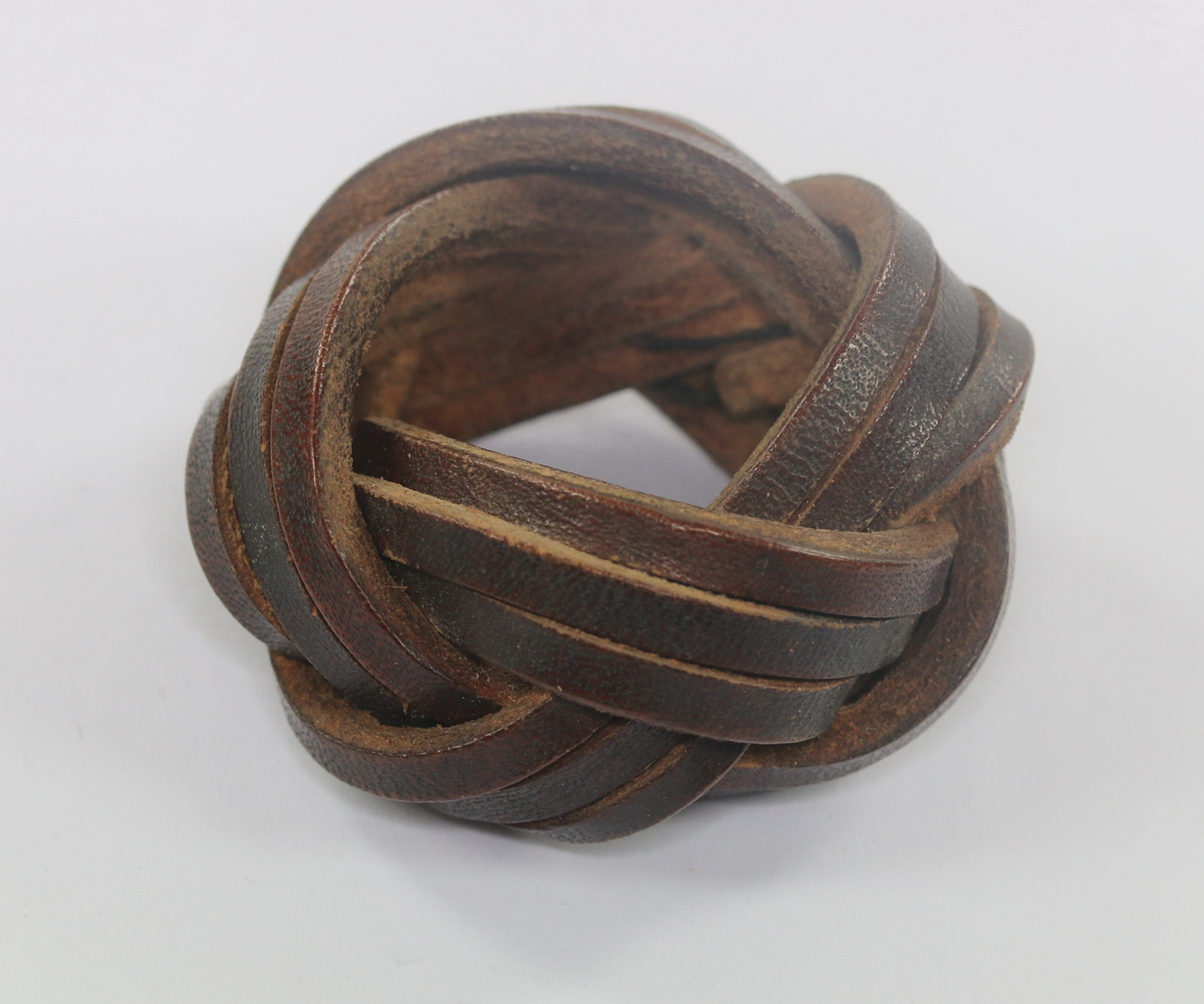 Leather straps tied in the form of a round knot and in a very good, slightly used condition.