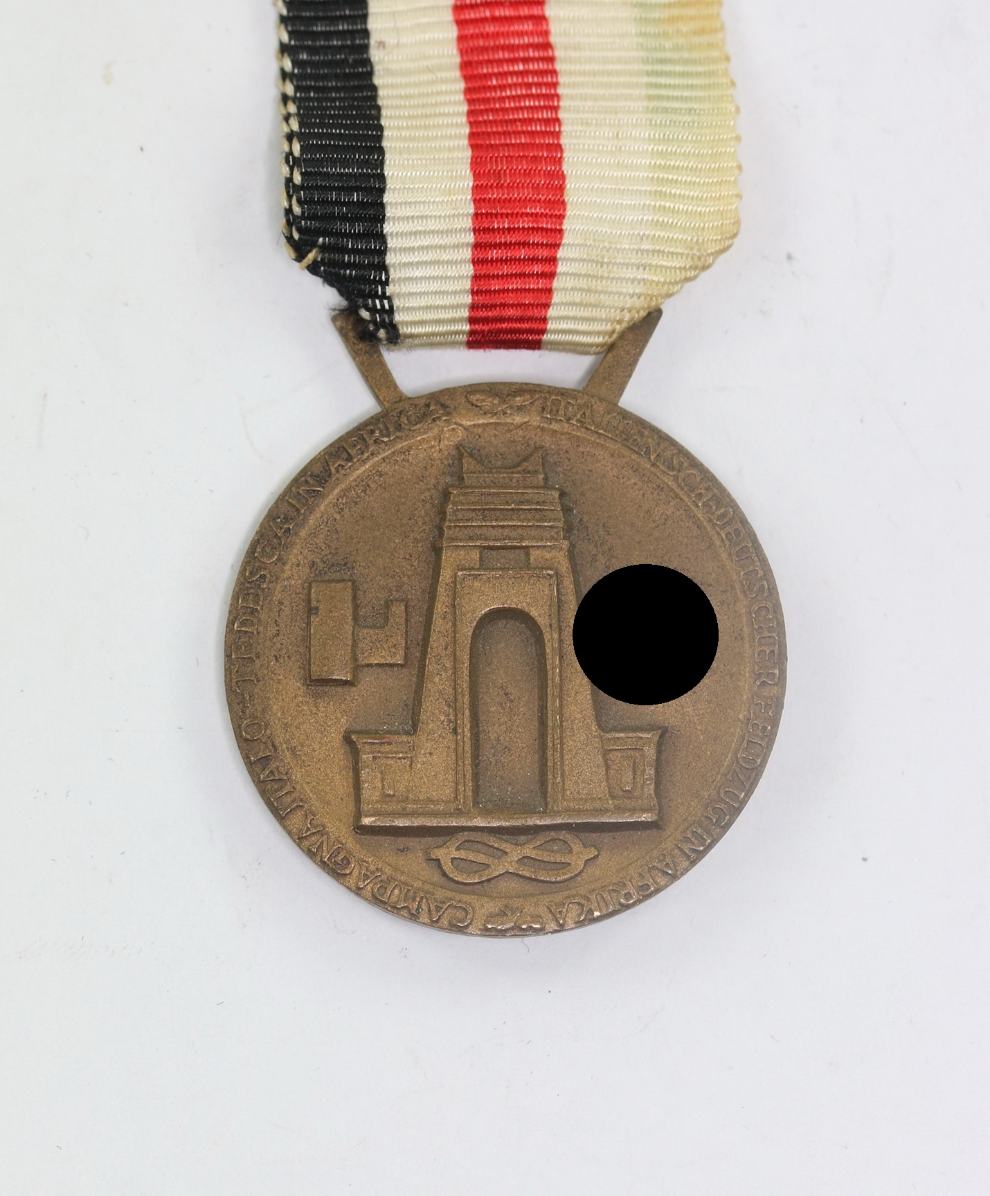 Bronze based and in a very good, slightly worn condition. Marked with the maker and die cutter names. On ribbon with pin.