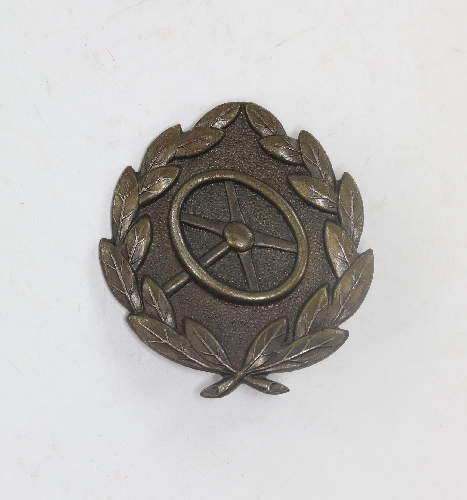 Iron based and in a very good, slightly worn condition. Complete with both prongs, backing plate and mounted on Army cloth.