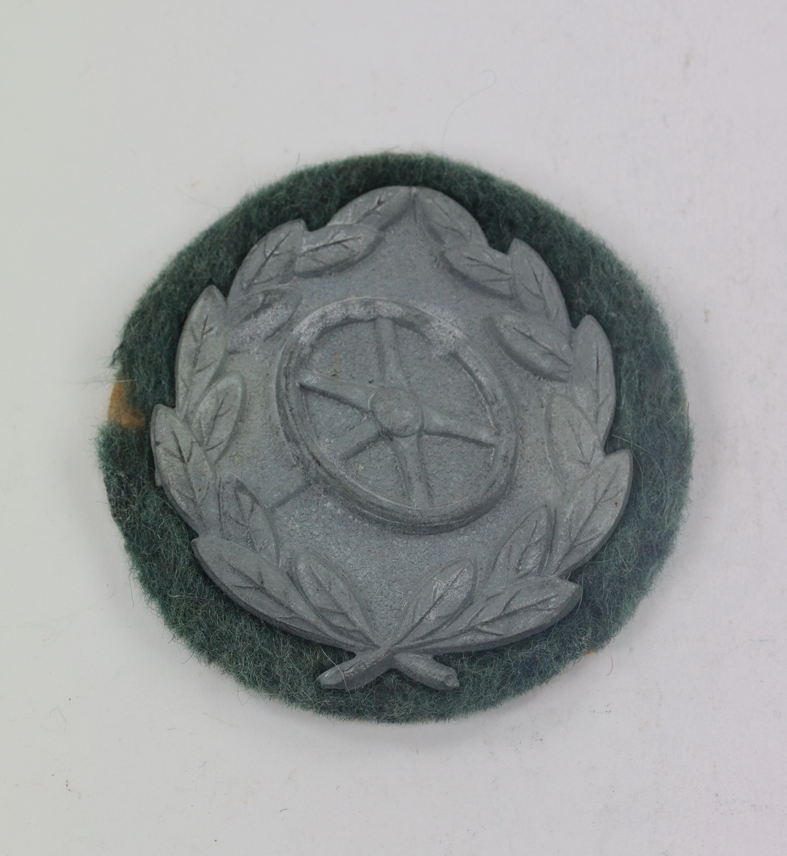 Zink versilbert, sehr guter, ungetragener Zustand. Vollständig mit beiden Splinten, der Gegenplatte und der typischen Papierabdeckung.