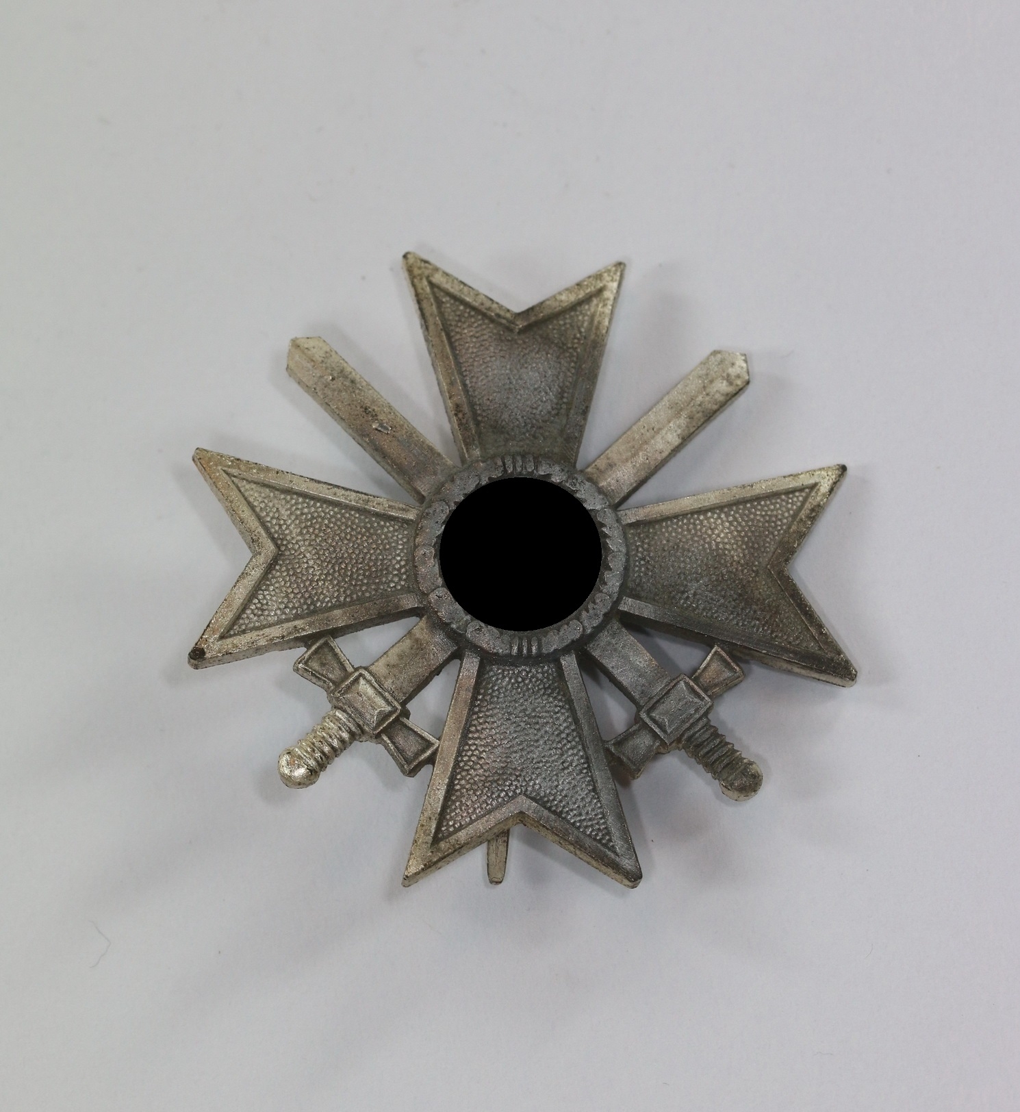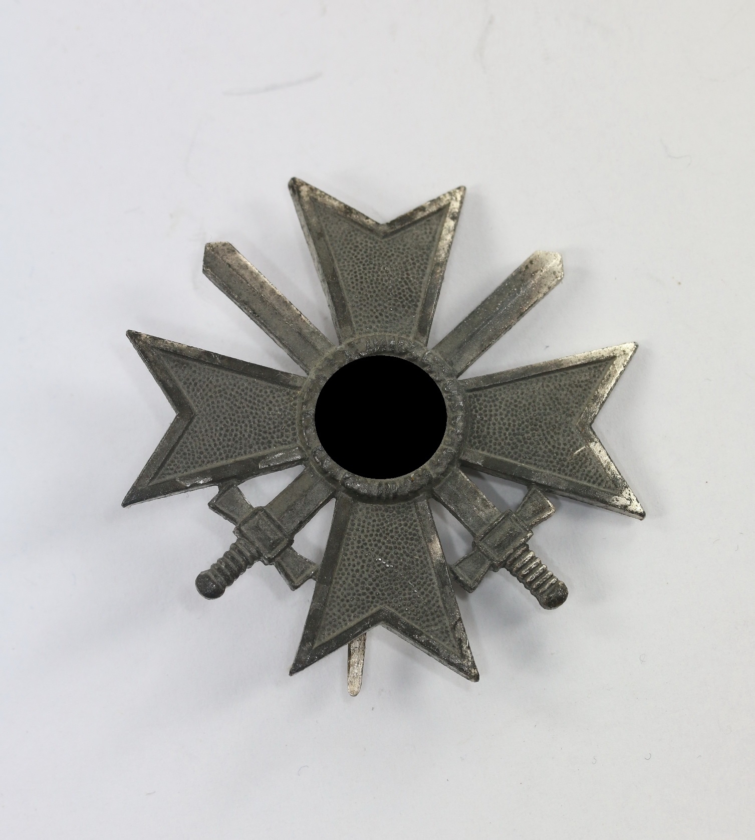 Zinc based and in a very good, probably unworn condition with practically all of the matt silver plate still present, the swastika and high points burnished and all with some patina.