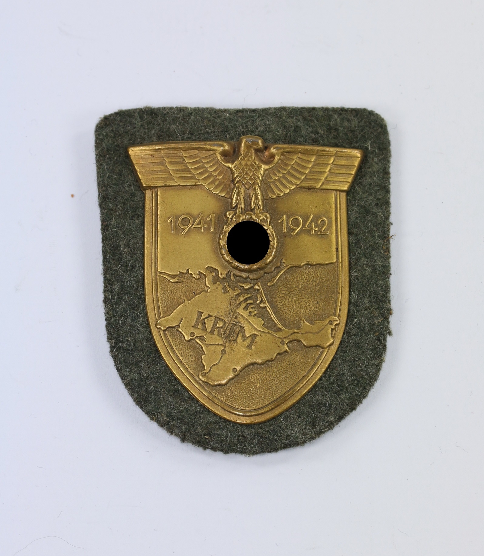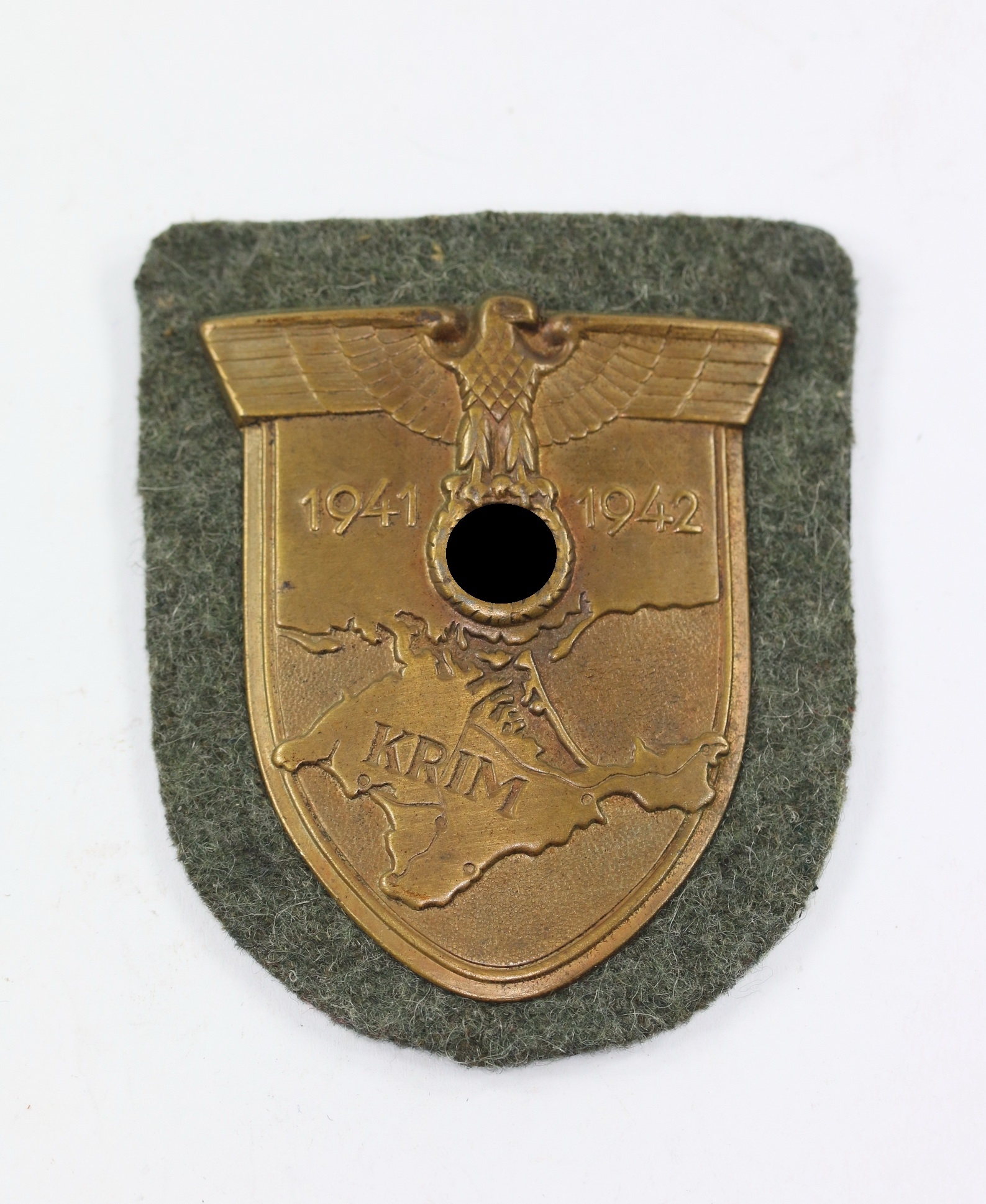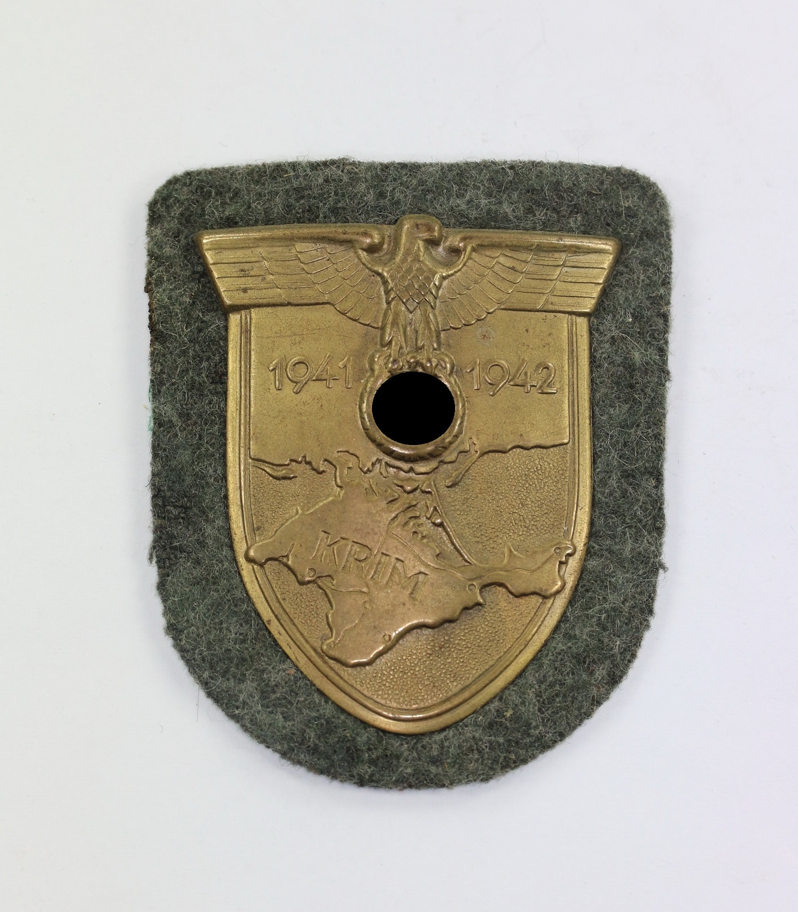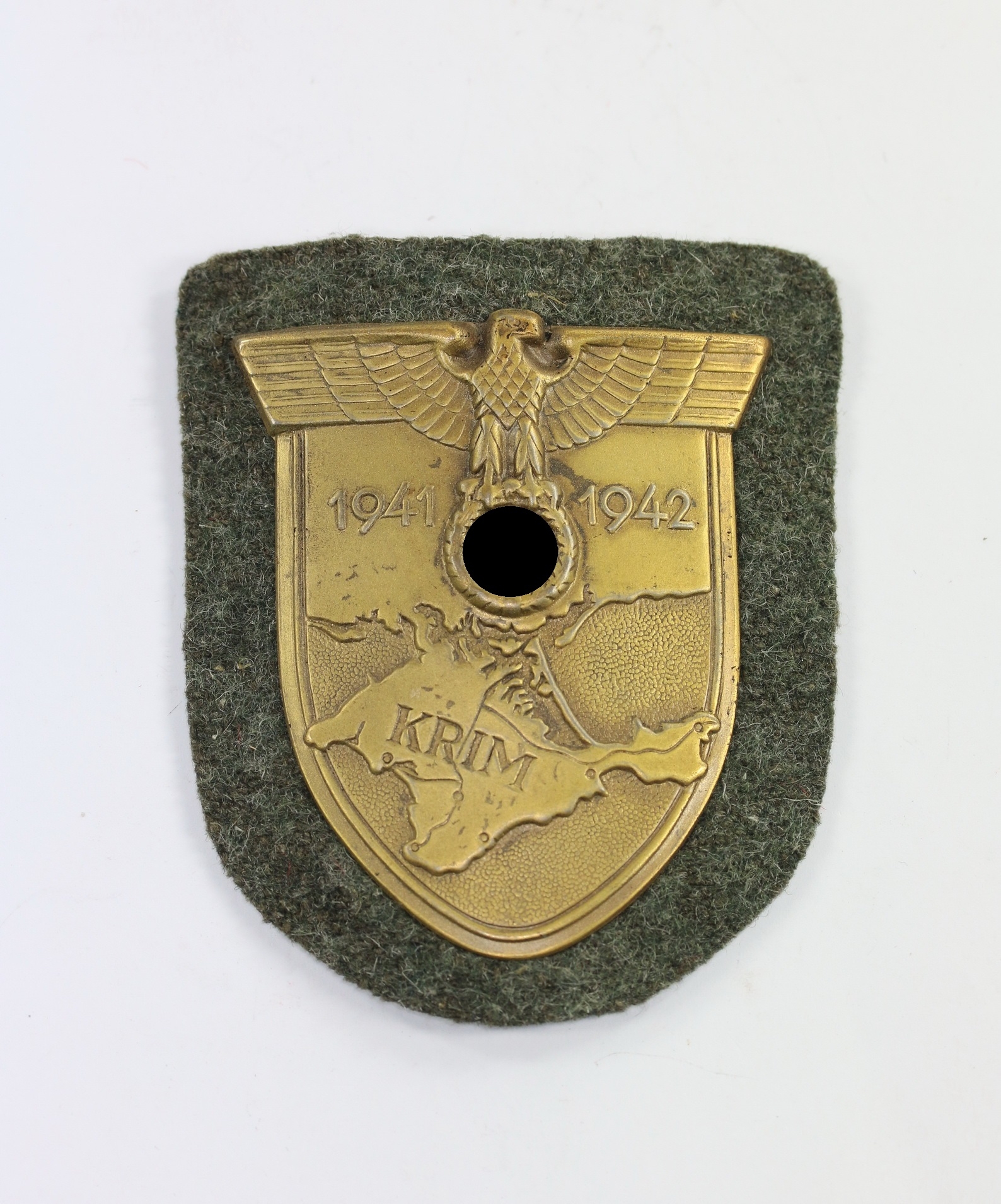 Iron based and in a very good, unworn condition with all of the bronze wash still present. Complete with all four prongs, backing plate and typical black paper covering.