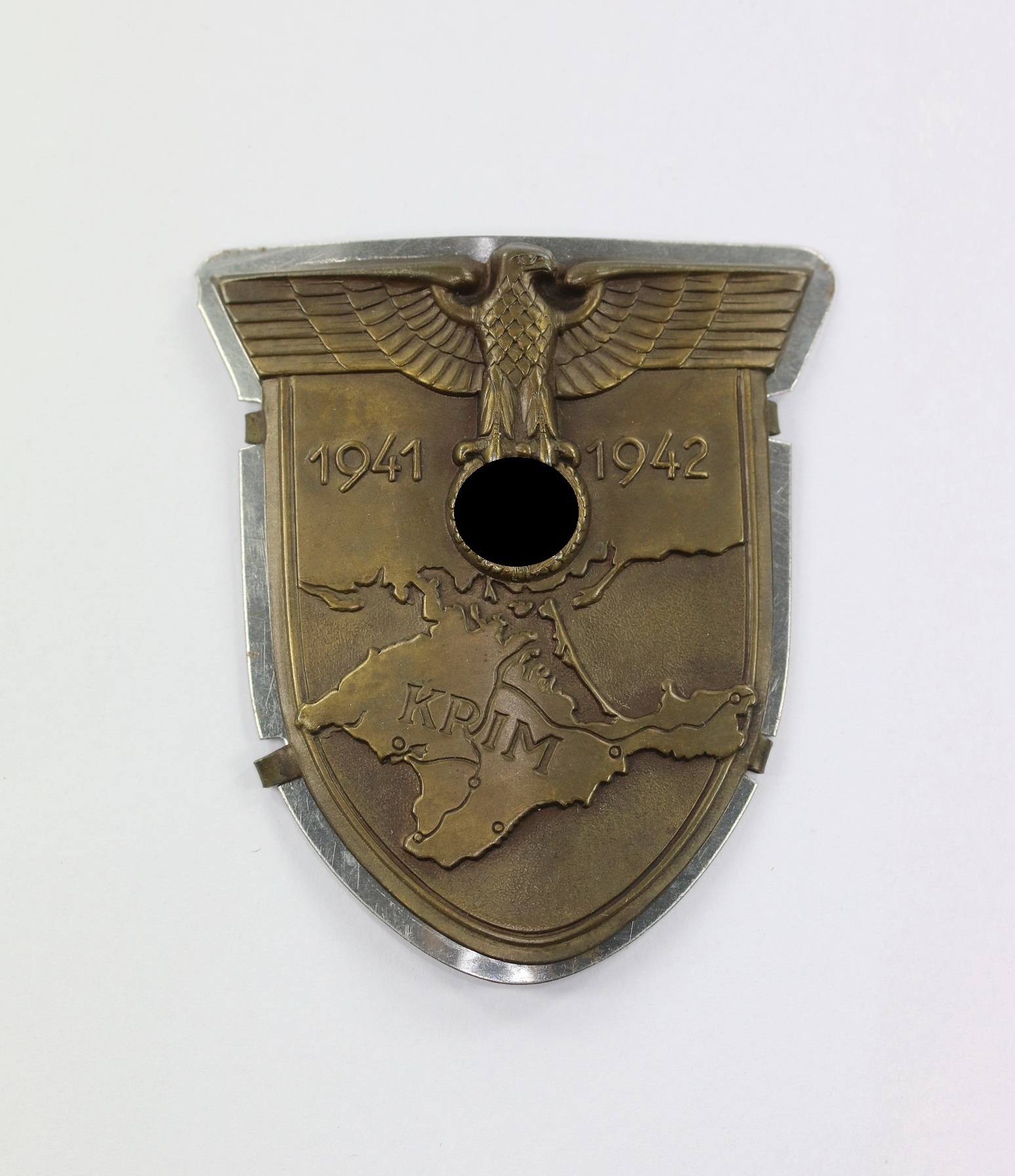 Iron based and in a very good, slightly worn condition with practically all of the bronze wash still present. Complete with all four side prongs and backing plate.