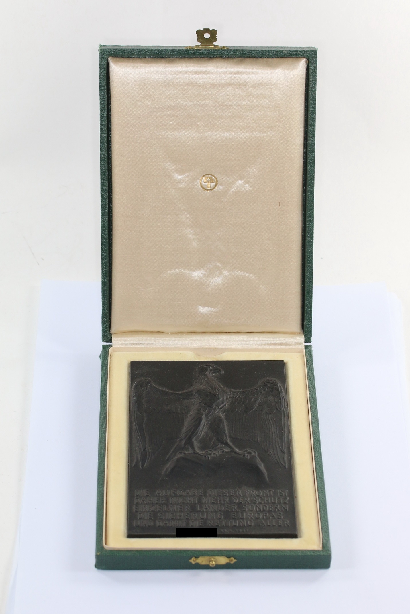 Cased Hitler Plaque with Quotation. Maker Lauchhammer.