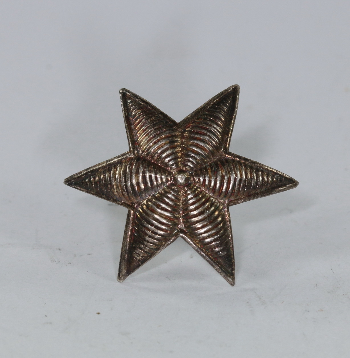 Buntmetall hohlgeprägt und versilbert, sehr guter, nur leicht getragener Zustand. Durchmesser ca. 26 mm. Selten!