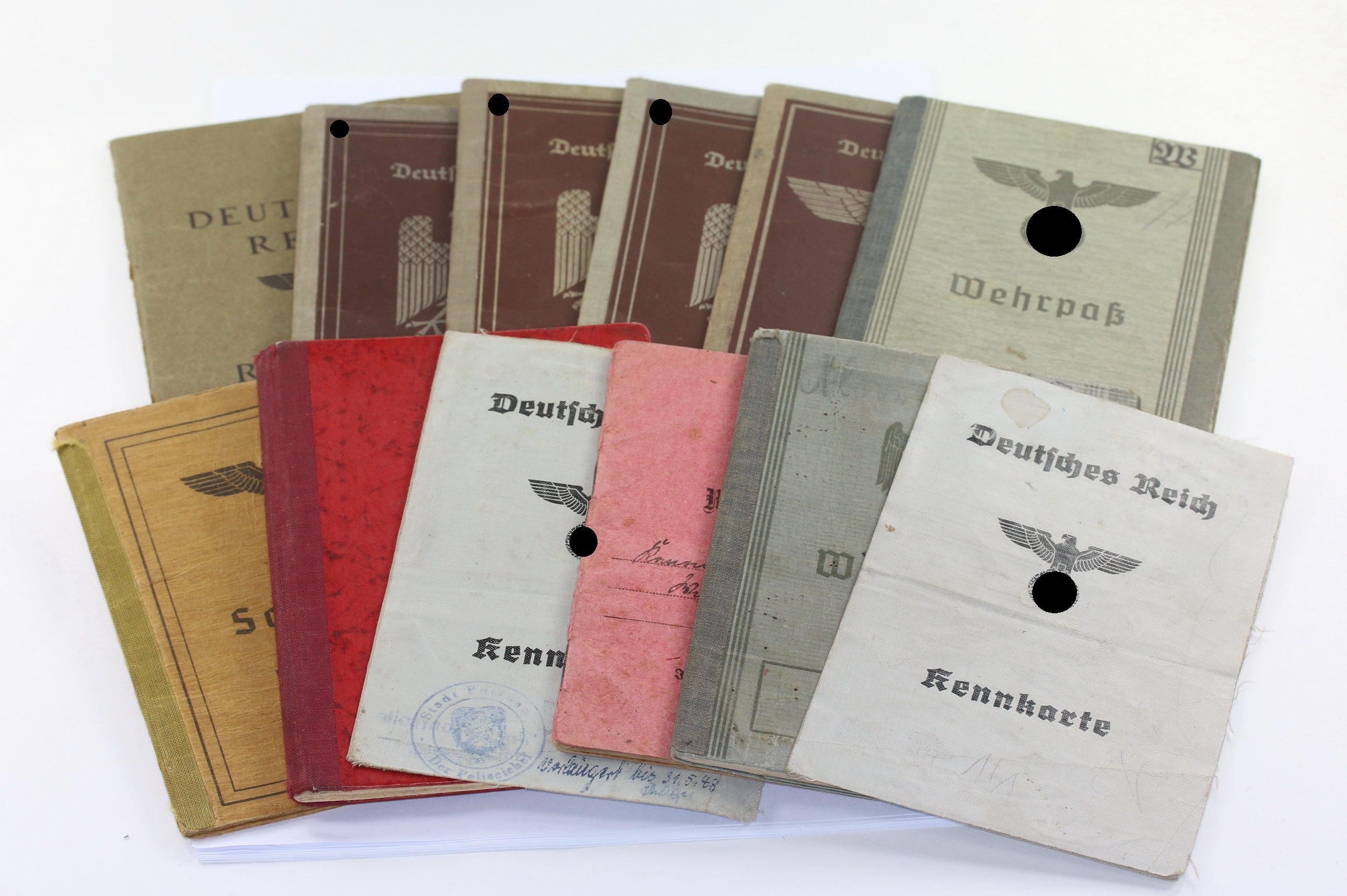 A job lot comprised of twelve(12) identification documents/books. All in a good to very good condition. Sold as shown on the photos.