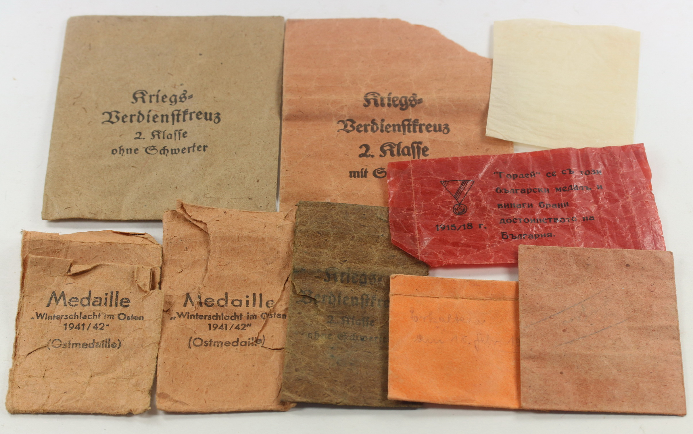 Nine envelopes. All in a heavily used or damaged condition.