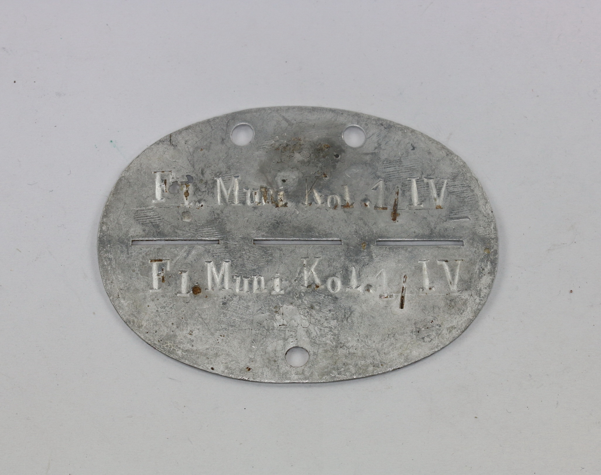 Aluminium based and in a very good, slightly worn condition. Stamped with „Fl. Munni Kol. 1/IV“ for Flieger Muinitions Kolonne 1/IV.