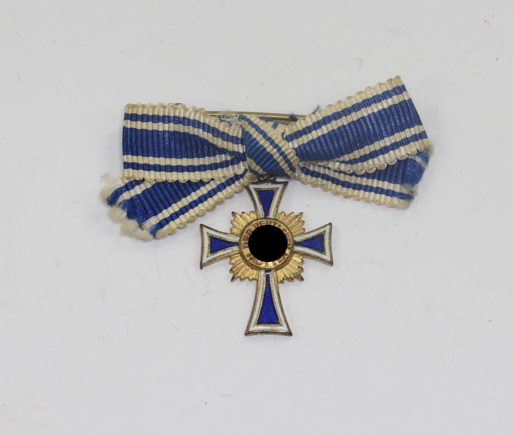 Sehr guter, nur leicht getragener Zustand. Die Emaille ohne Fehler, mit vollständiger Vergoldung. Ohne Hersteller, aber eine bekannte Variante. An Schleife mit Tragenadel.