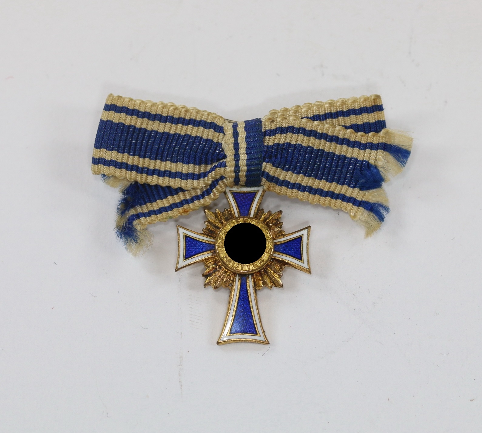 Miniatur Mutterkreuz in Gold an Schleife, Hst. L/14