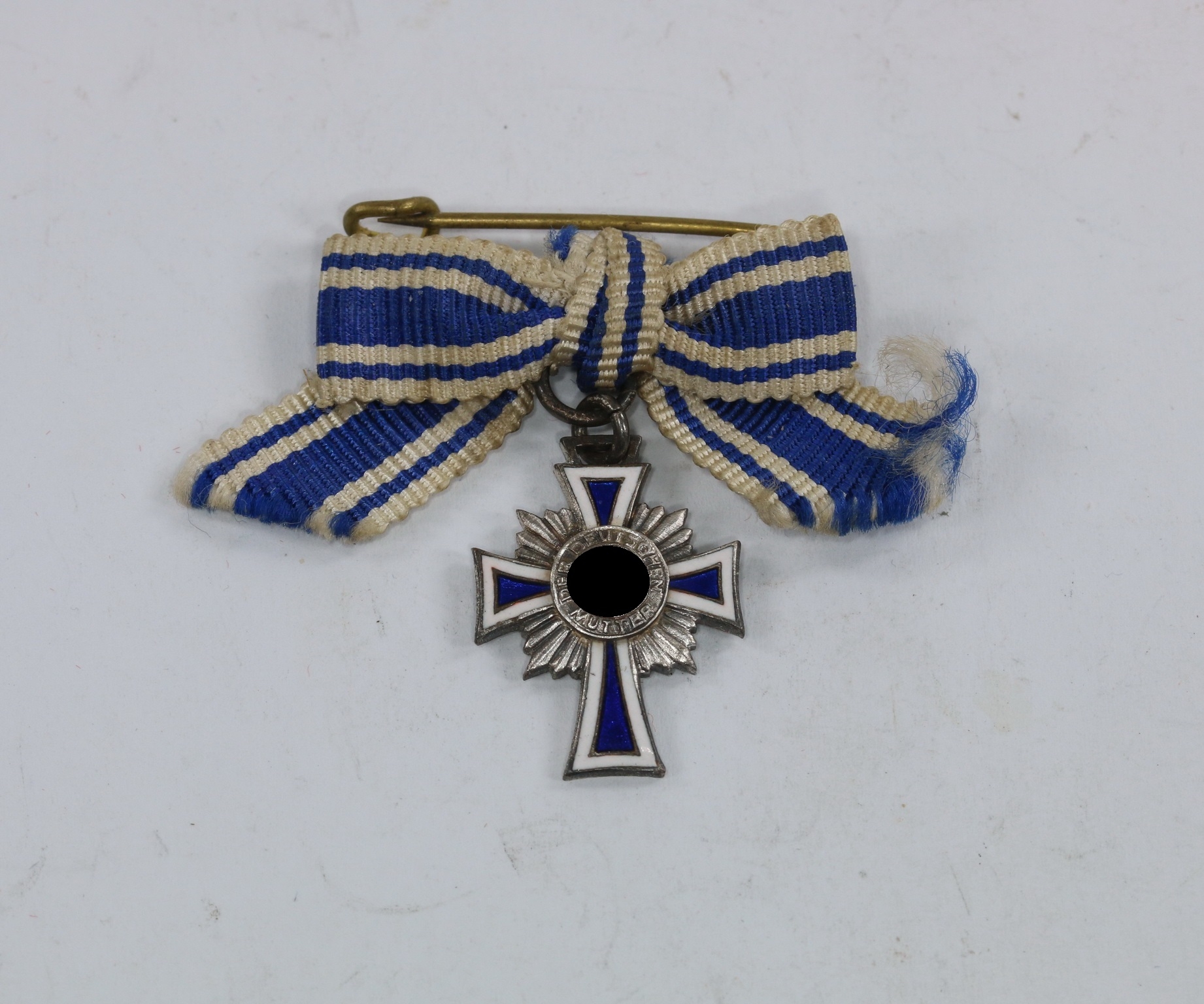 Miniatur Mutterkreuz in Silber an Schleife, Hst. L/10