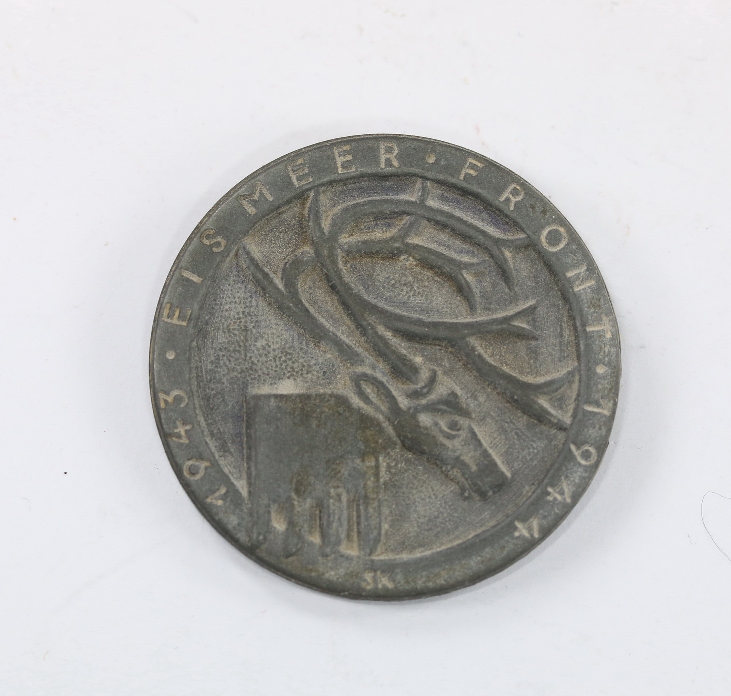 Zinc based and in a very good, slightly worn condition, the prongs complete and undamaged. Size approx. 35 mm.