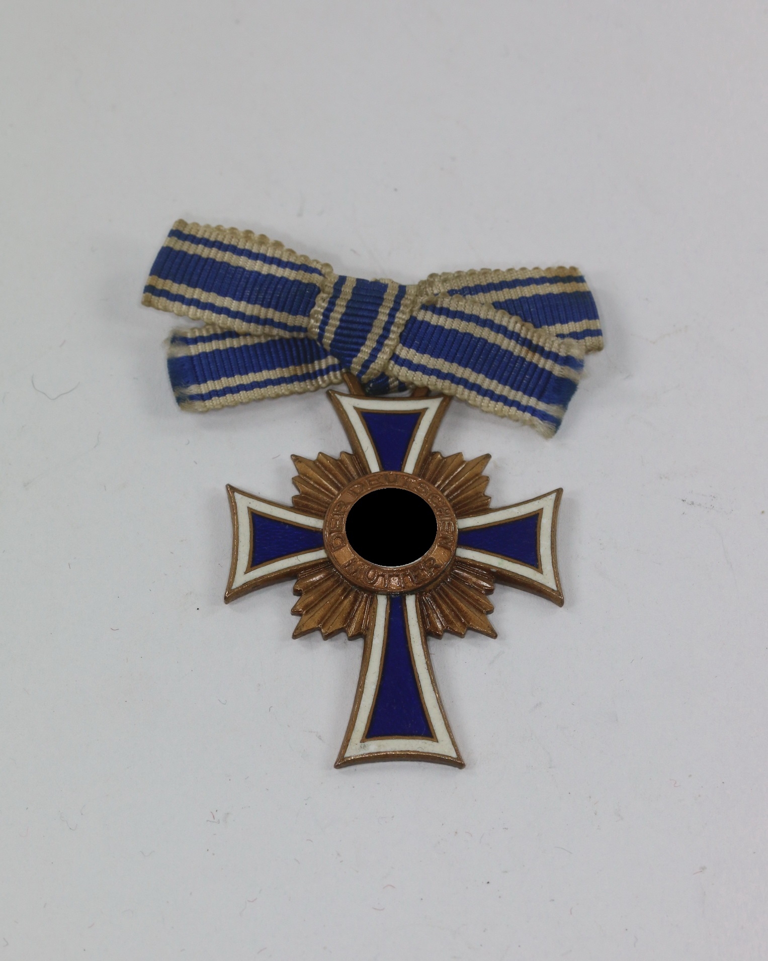 Buntmetall, sehr guter, nur minimal getragener Zustand. Die Emaille ohne Fehlern, die Bronzierung vollständig vorhanden. Ohne Hersteller, aber eine bekannte Variante. An vernähter Schleife mit Tragenadel.