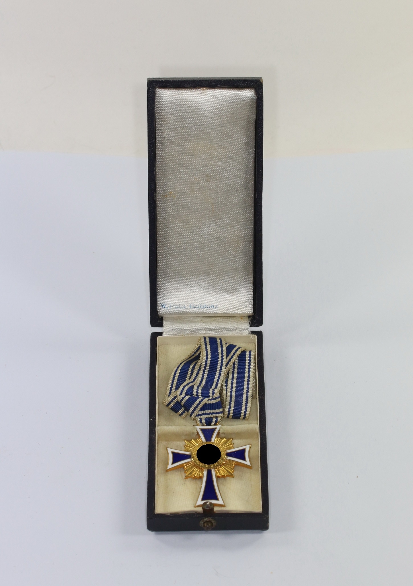Mutterkreuz in Gold, im Etui, W. Pala, Gablonz