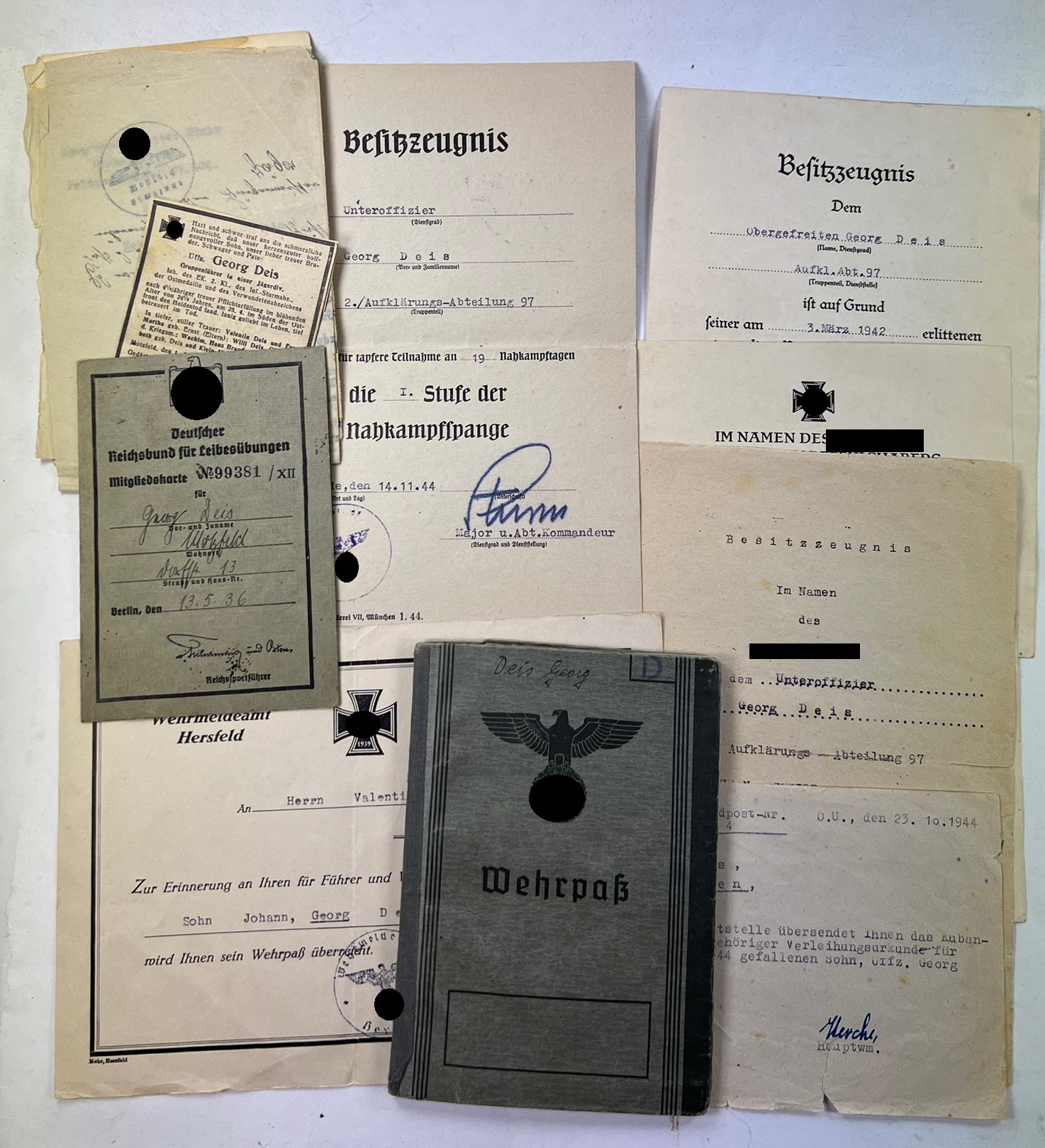 Document Group Aufklärungsabteilung 97, Unteroffizier Georg Deis.